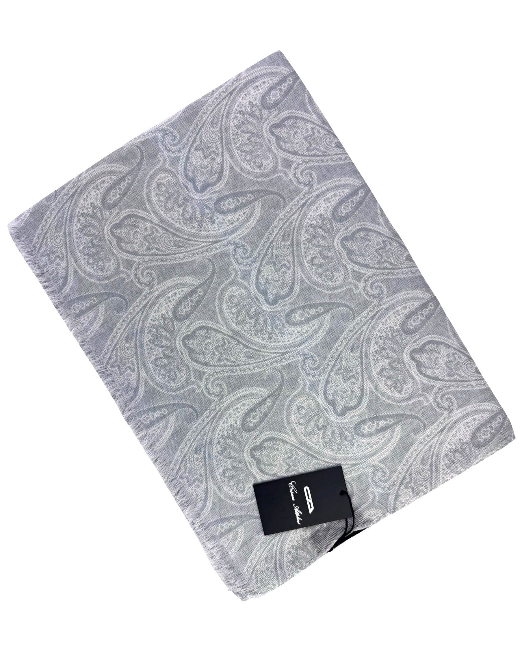 Cesare Attolini Scarf Gray White Paisley - Light Weight Cotton