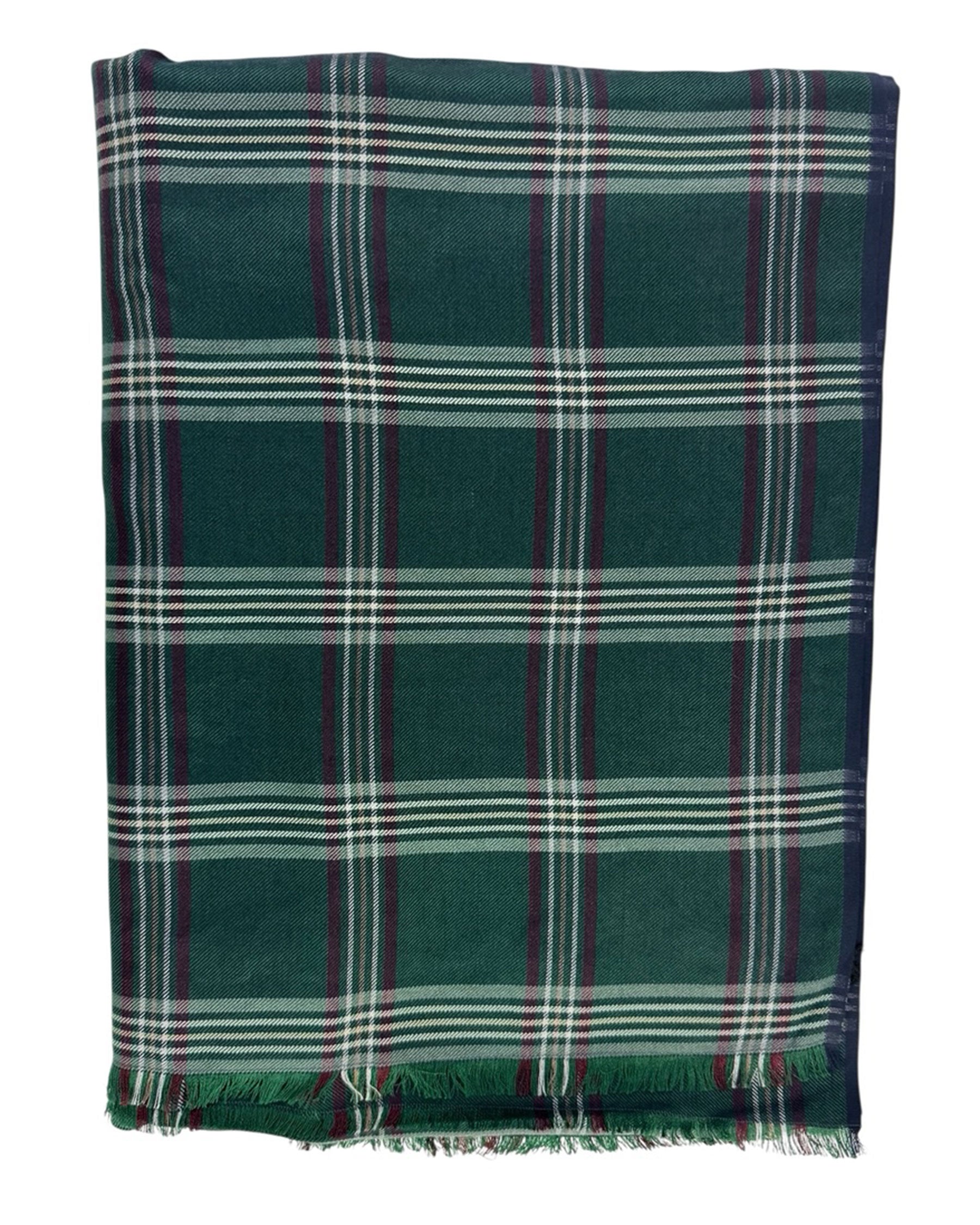 Authentic Cesare Attolini scarf, extra large dark green plaid check design, cashmere silk, short eyelash fringe, made in Italy. Cesare Attolini: sartorial quality men designer shawls and scarves, men collection at outlet prices. Shop discount Attolini scarves.