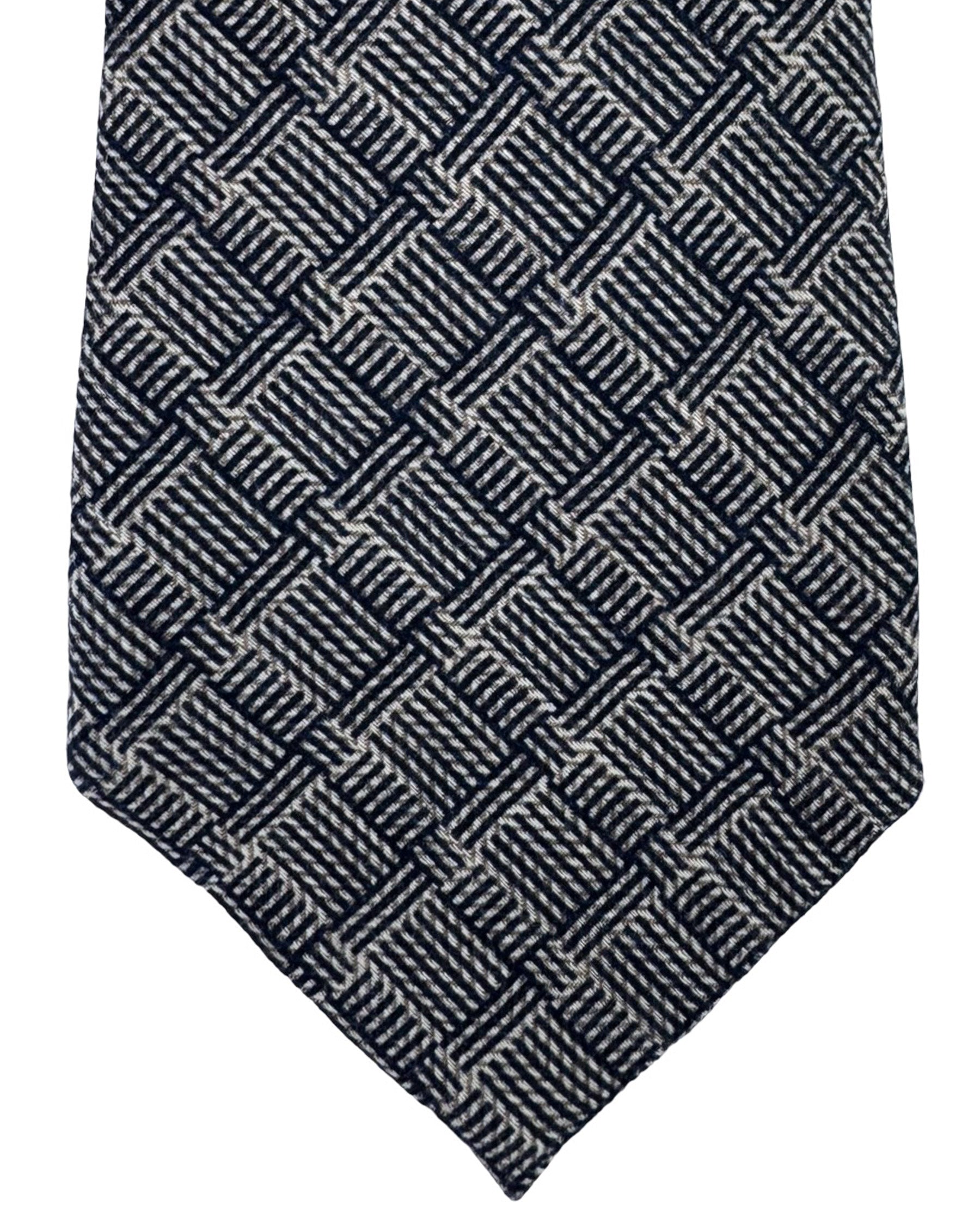 Genuine Ermenegildo Zegna silk tie, black gray check design, wool/ silk, hand made in Italy. Authentic Ermenegildo Zegna ties, designer men collection at outlet prices.