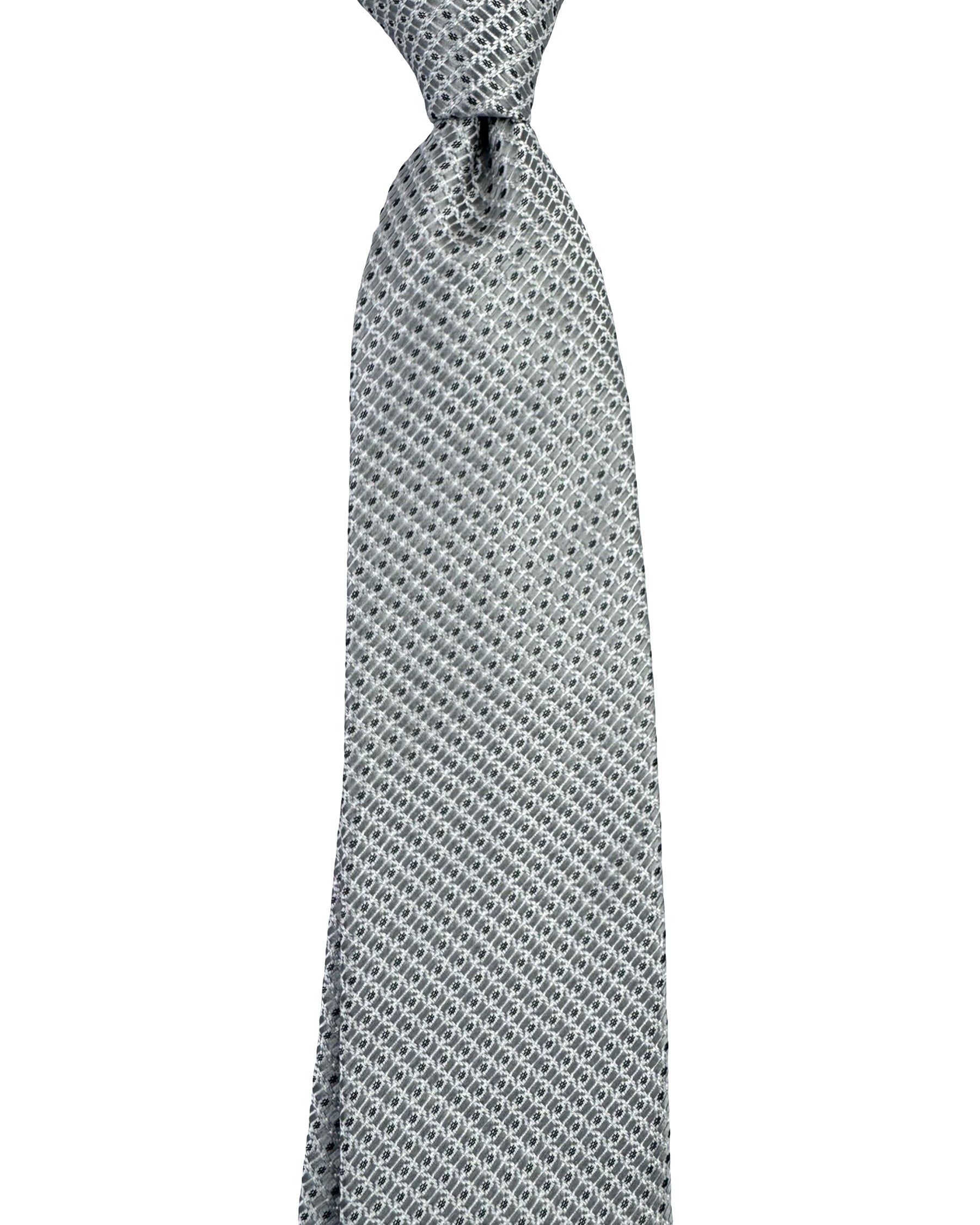 Genuine Ermenegildo Zegna silk tie, gray silver woven jacquard design, silk, hand made in Italy. Authentic Ermenegildo Zegna ties, luxury designer men collection at outlet prices.