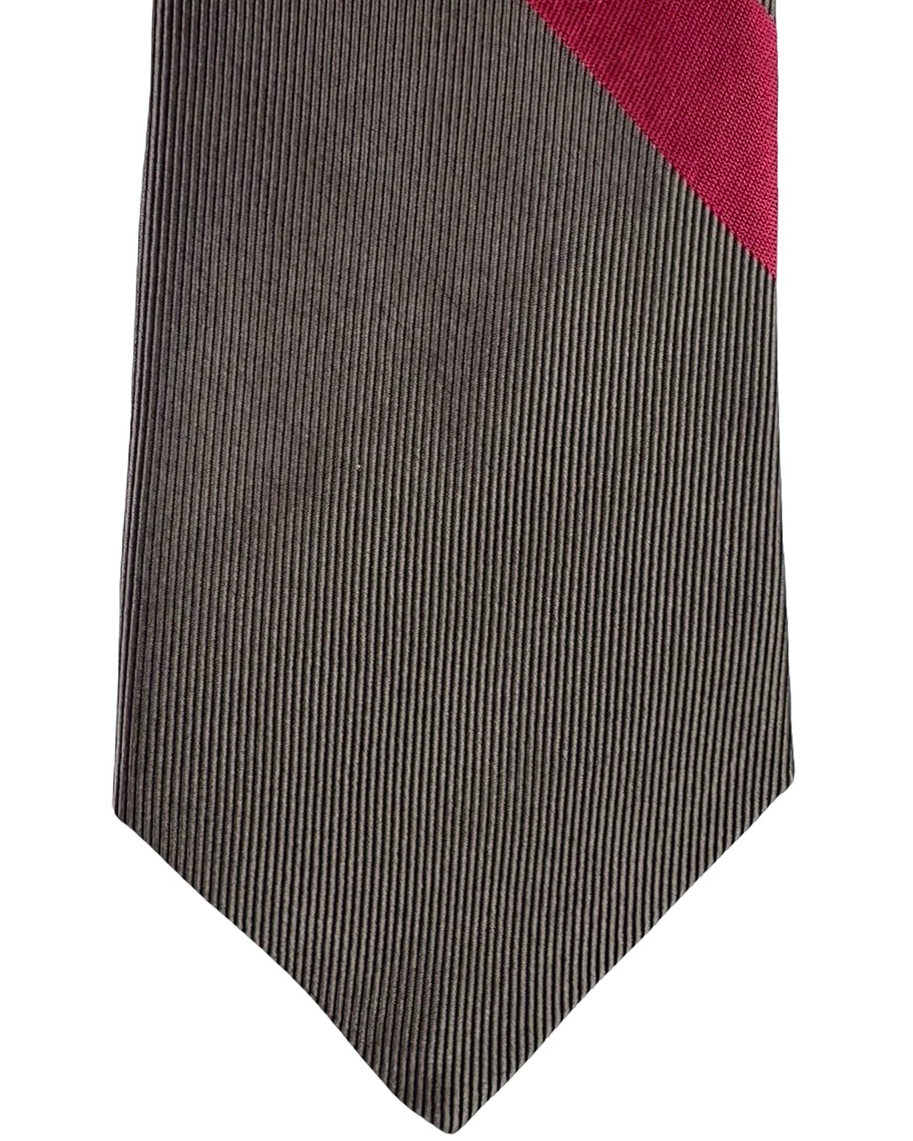 Original Gene Meyer ties, tan base layered with rich stripe bands in burgundy, mustard, olive, grey, and violet, jacquard silk, hand made in Italy. Gene Meyer New York. Cool men neckties. View all Gene Meyer Socks/ Ties & Bow Ties.