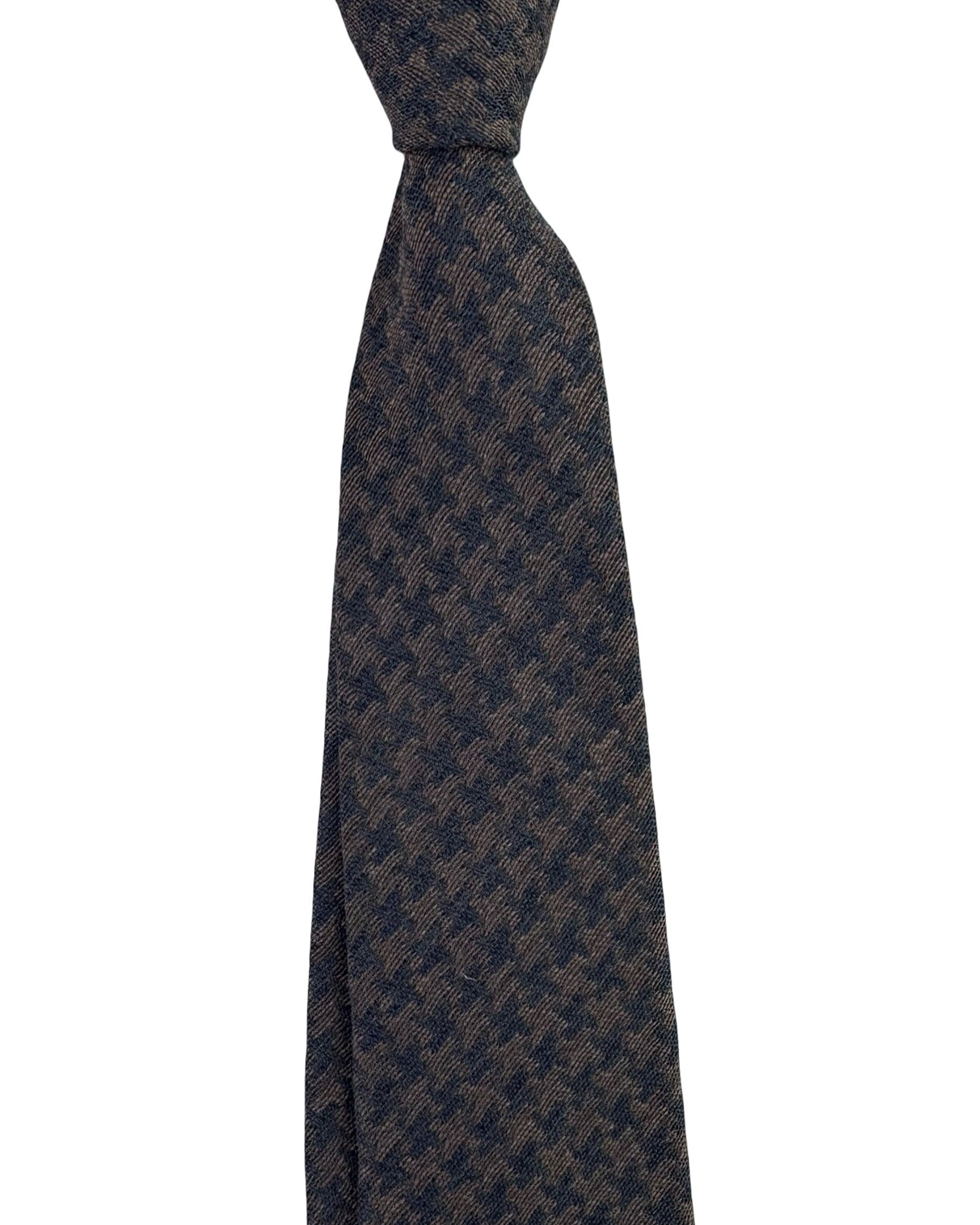 Genuine Armani tie with brown/ black houndstooth, wool/ silk, hand made in Italy. Luxury Armani Collezioni men collection online. Discount men designer ties.
