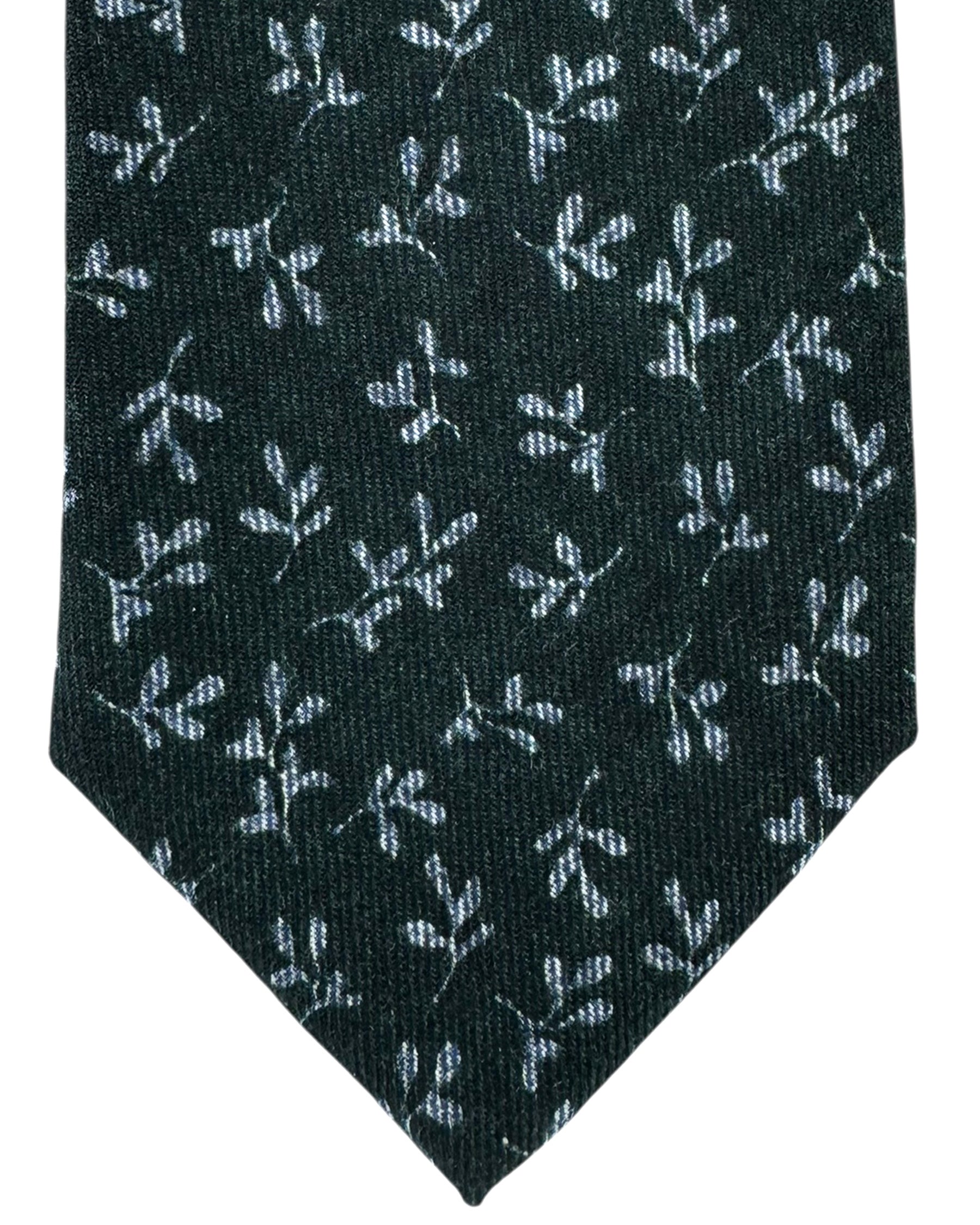 Isaia Wool Tie Dark Green Gray Leafs Design