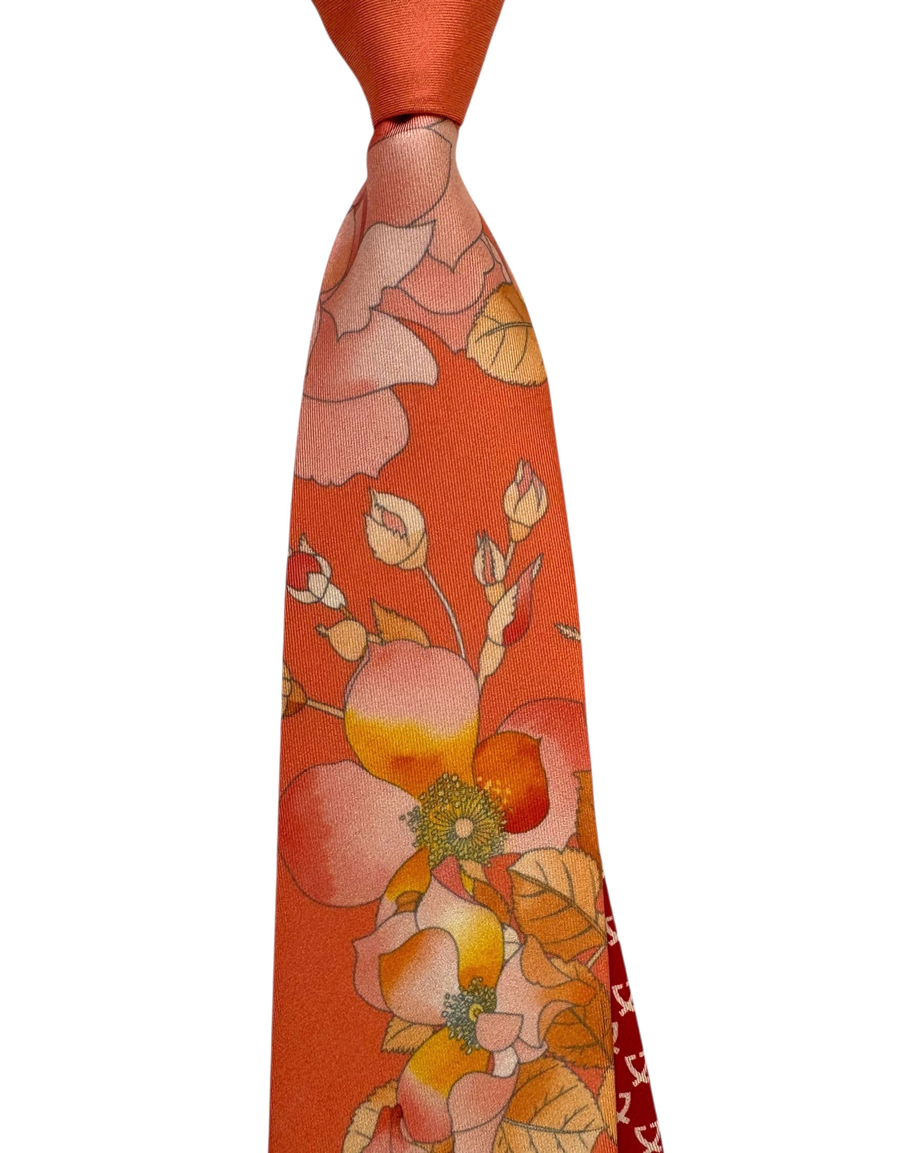 Authentic Leonard tie, peach floral, luxury printed silk, hand made in Italy. Luxury accessories, hand made in Italy: Leonard Paris is known for it stunning colorful and unique floral designs.