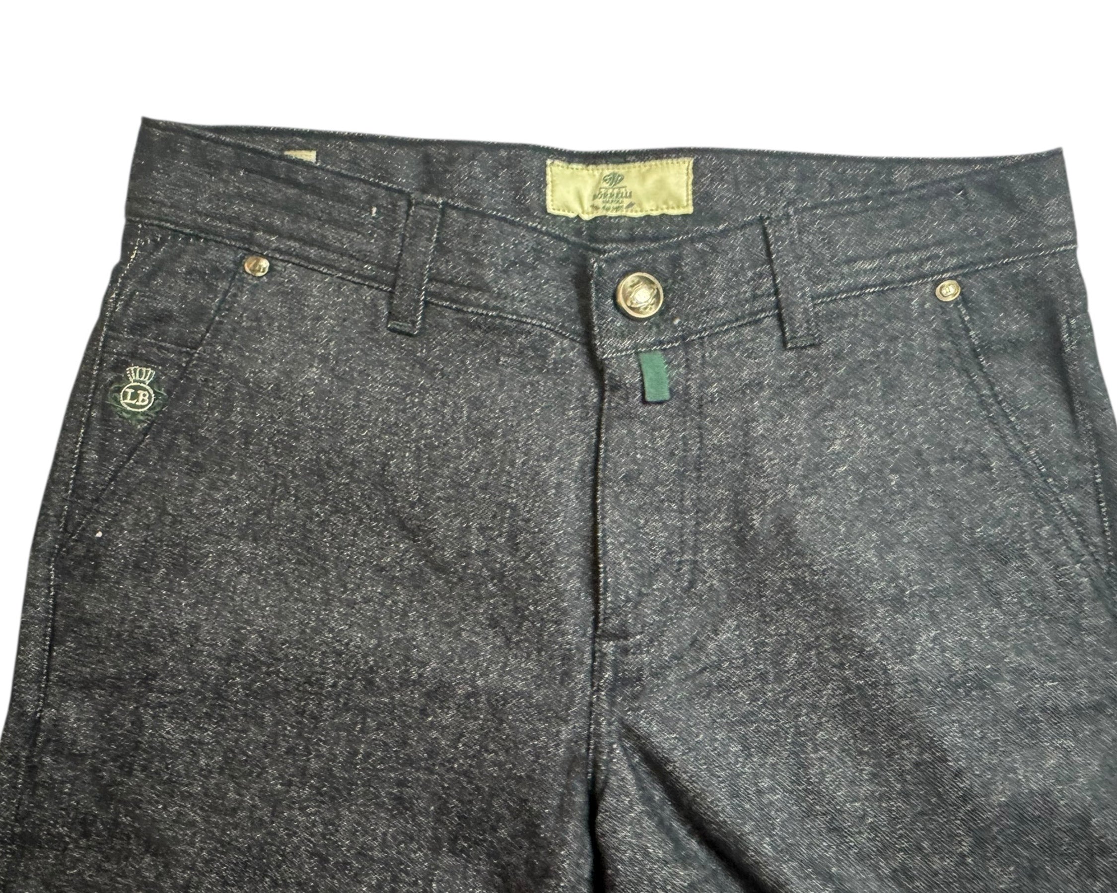 Genuine Borrelli jeans, stretch - dark denim blue, wool/ cashmere cotton blend, slim fit pants, zip fly, hand made in Italy. Luigi Borrelli Napoli men collection, hand made jeans, sartorial tailoring. View all sartorial men jeans/ pants.