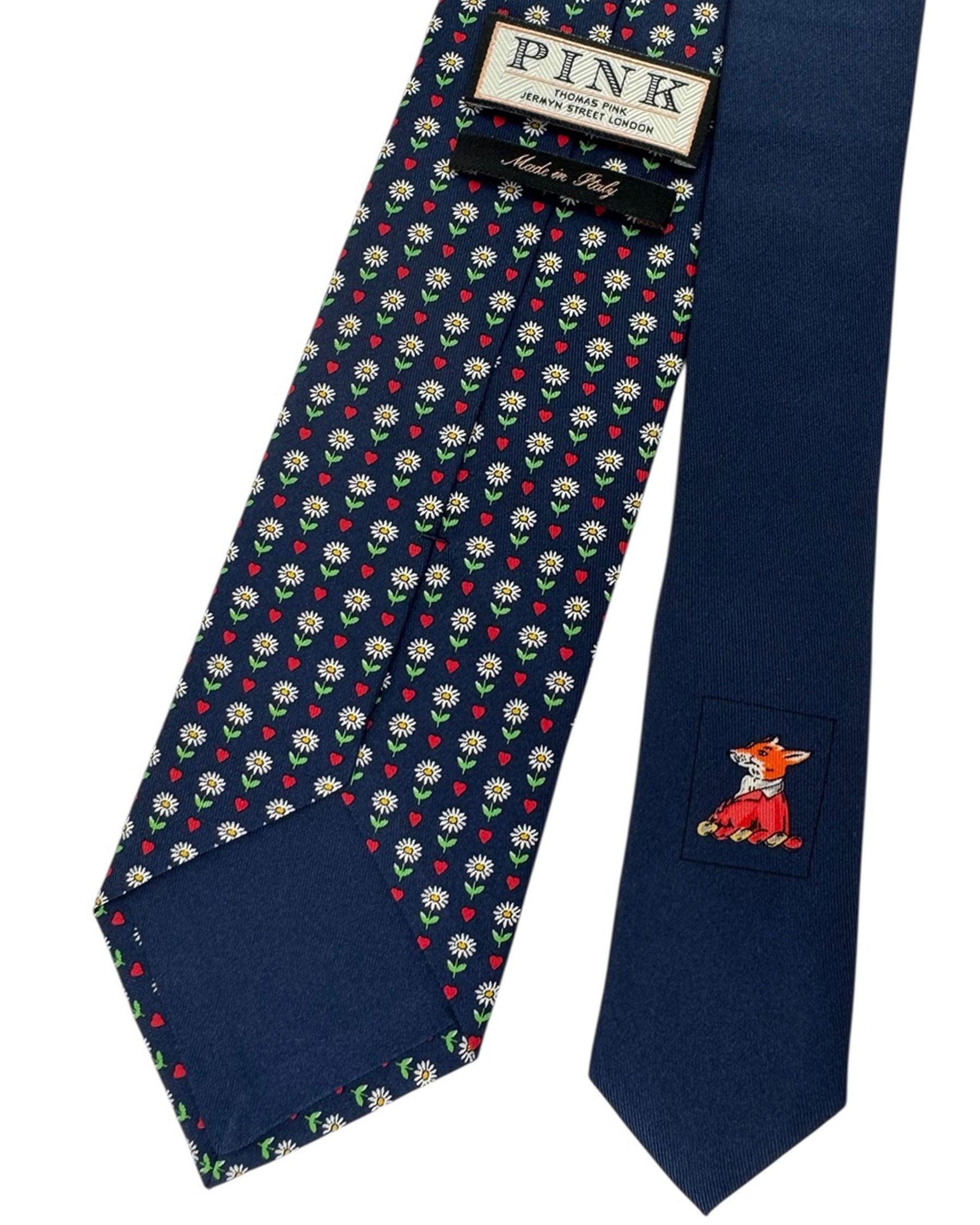 Great deal, great quality! Genuine Thomas Pink tie, navy mini flowers, printed silk, hand made in Italy. Discount Thomas Pink, high quality hand made neckties, at outlet prices.