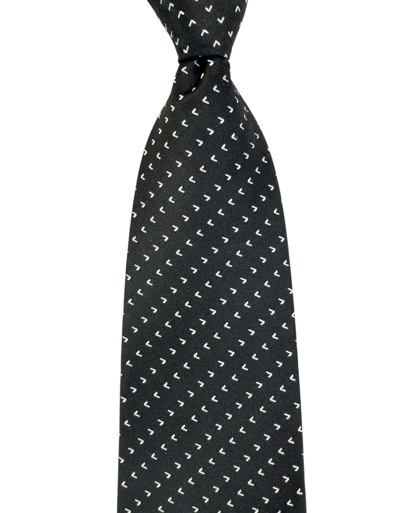 Genuine Valextra tie, black base with a sleek diagonal pattern of white chevrons, wide 9.5cm width, jacquard silk, self tipped, high quality, hand made in Italy. Discount luxury designer ties, Valextra men fashion accessories at outlet prices.