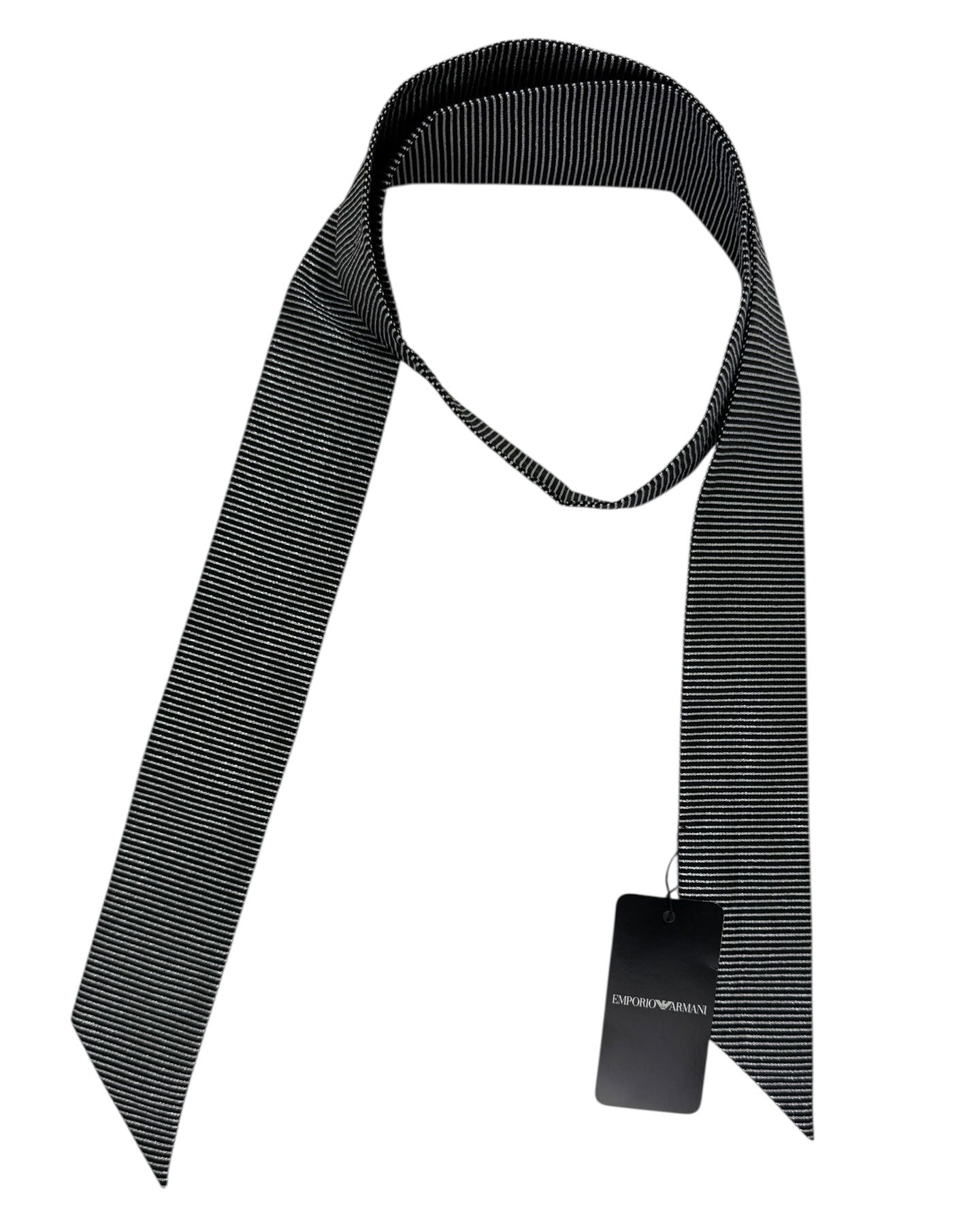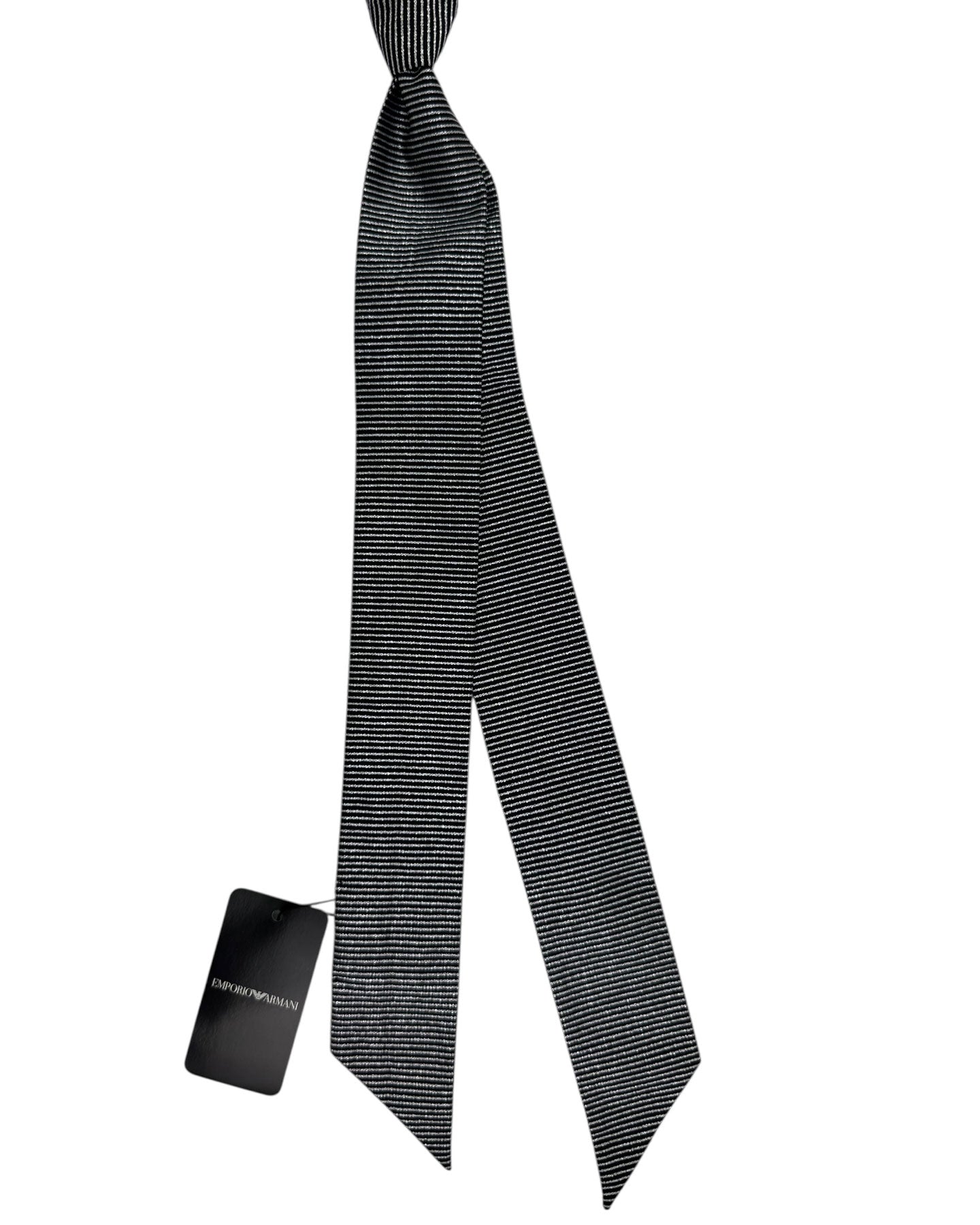 BLACK FRIDAY SALE - Genuine Emporio Armani tie/ neck scarf, black silver stripes, straight cut scarf/ tie, silk, hand made in Italy. Luxury Armani men collection online. Discount men designer ties.