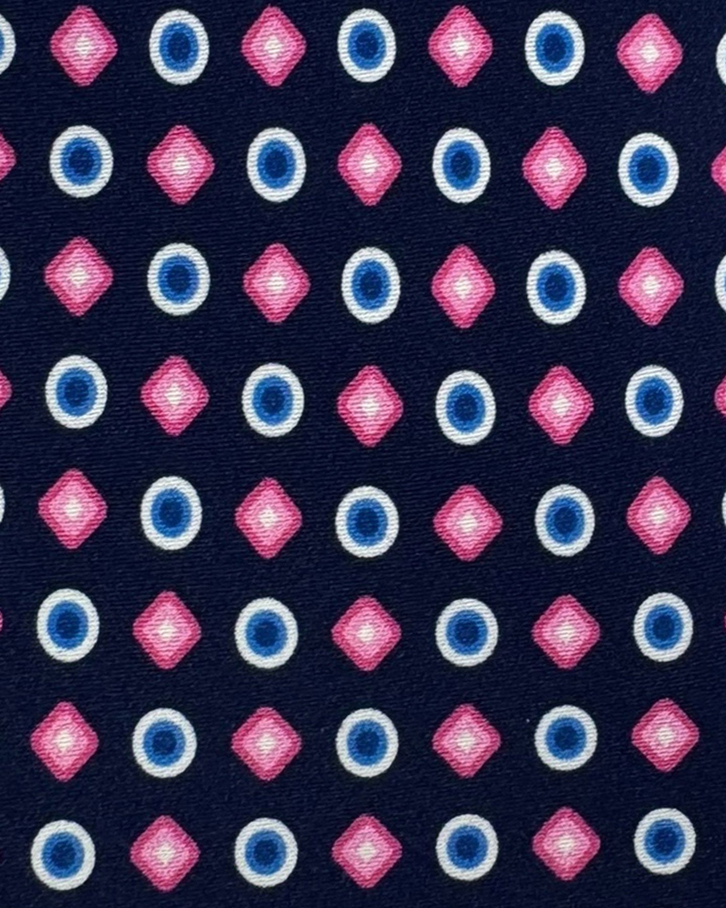 Top quality hand made neckwear: Genuine Church's tie, navy pink geometric design, silk, hand made in Italy. Church men collection, top quality neckwear, made in Italy. Discount men designer neckties