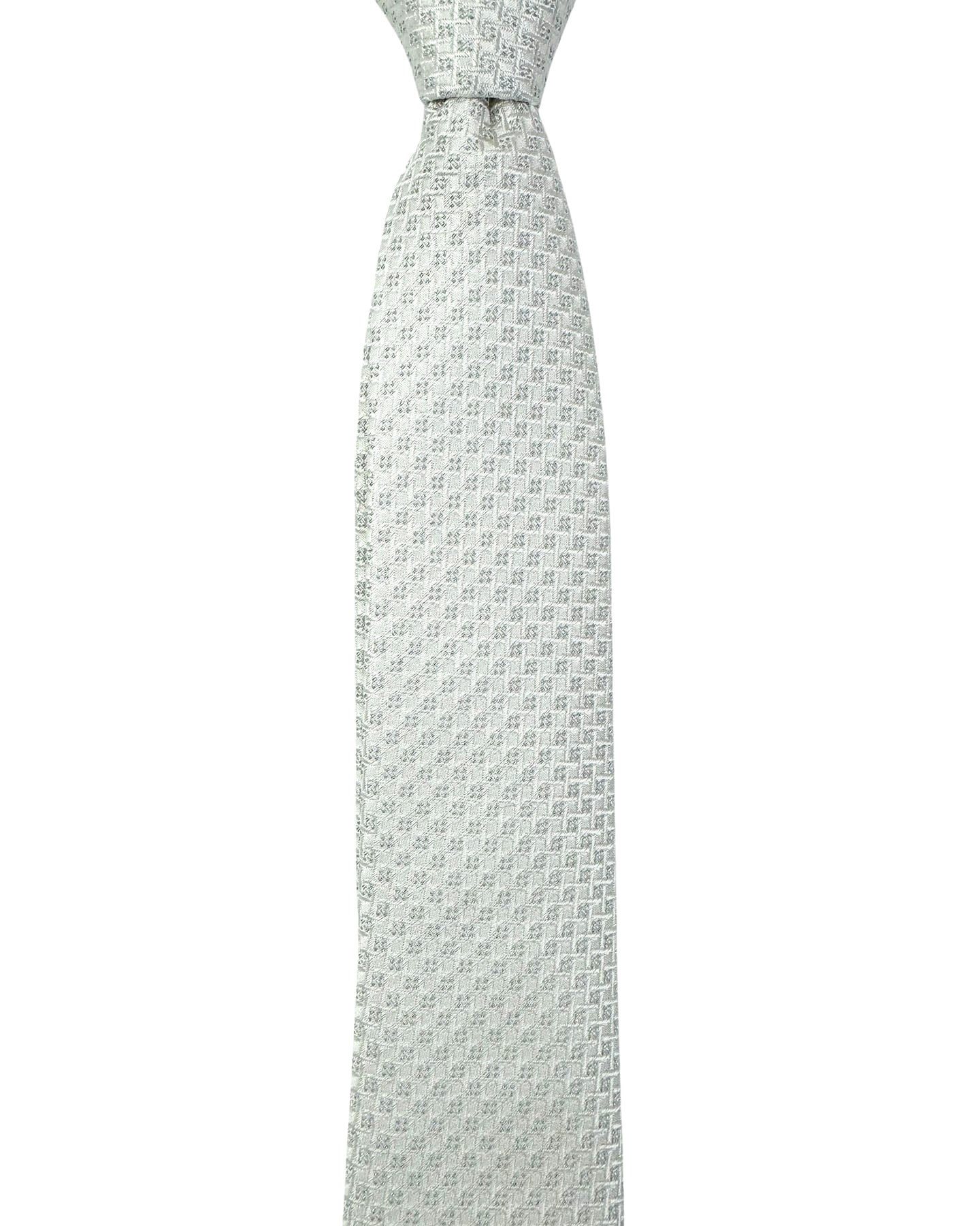 - SALE - Genuine Dolce & Gabbana skinny tie, gray silver tie with a repeating geometric lattice pattern, silk, hand made in Italy. Authentic Dolce & Gabbana men collection accessories, made in Italy. Discount luxury brand name ties.