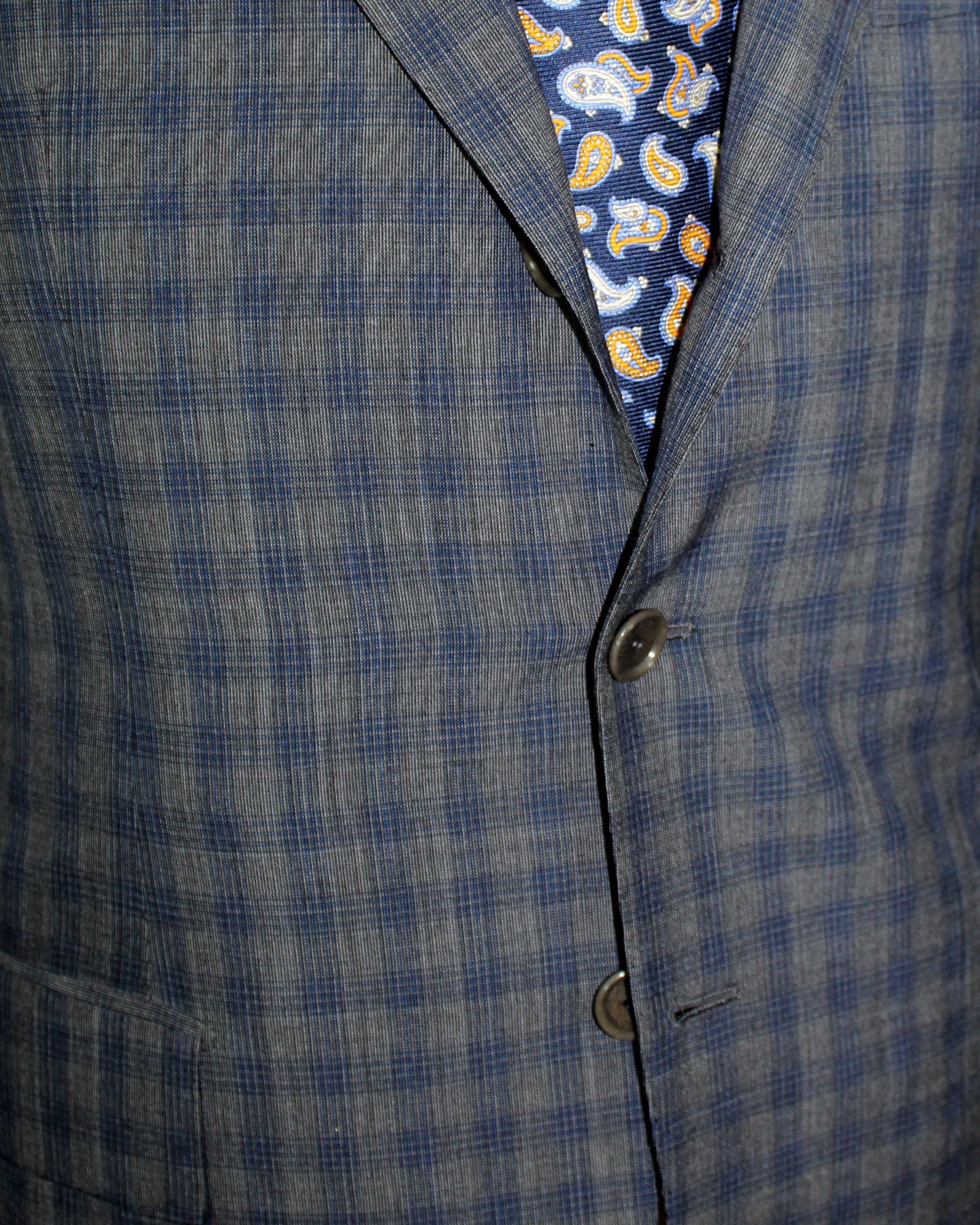 Cesare Attolini Wool Suit Gray Midnight Blue Check EU 48/ US 38