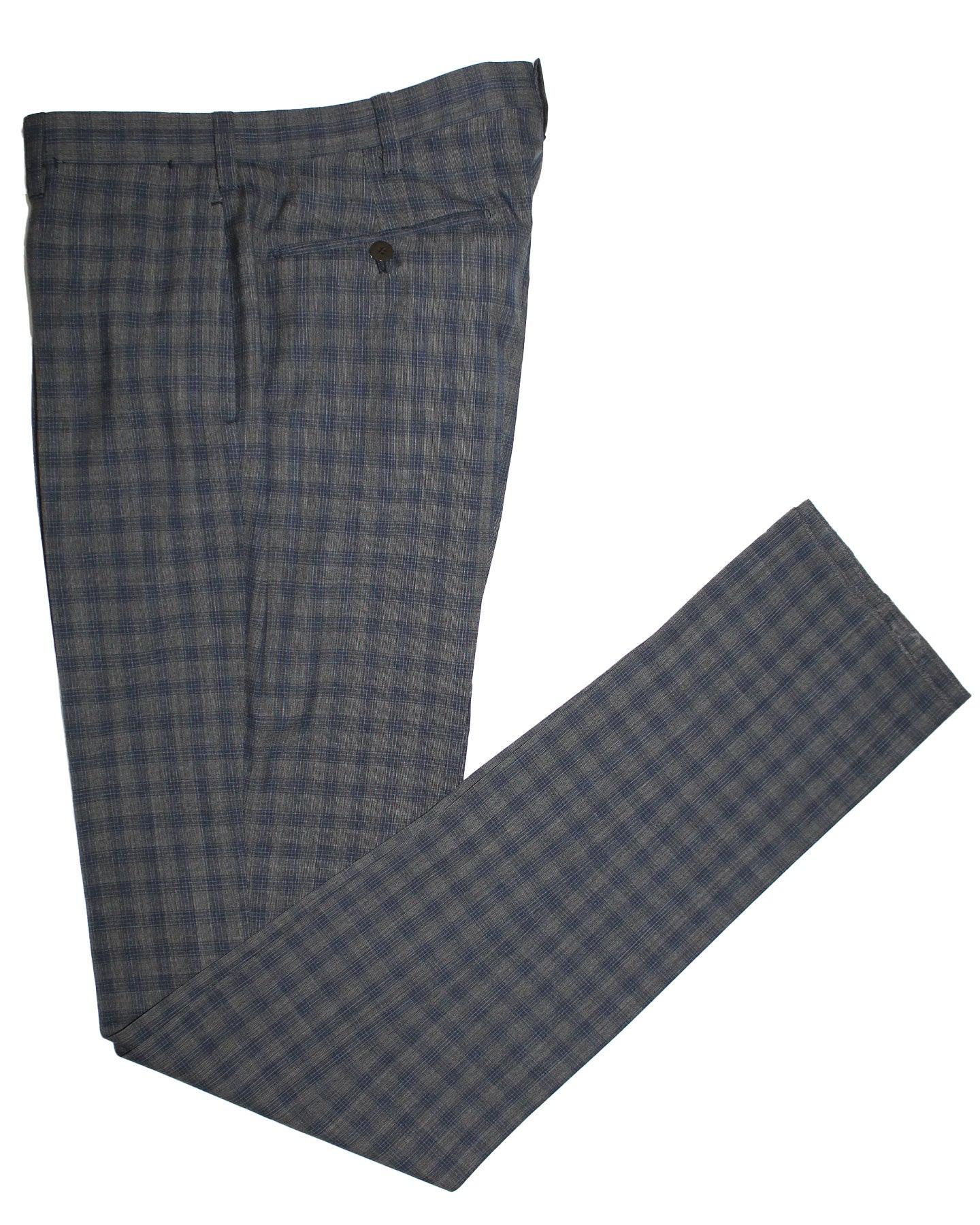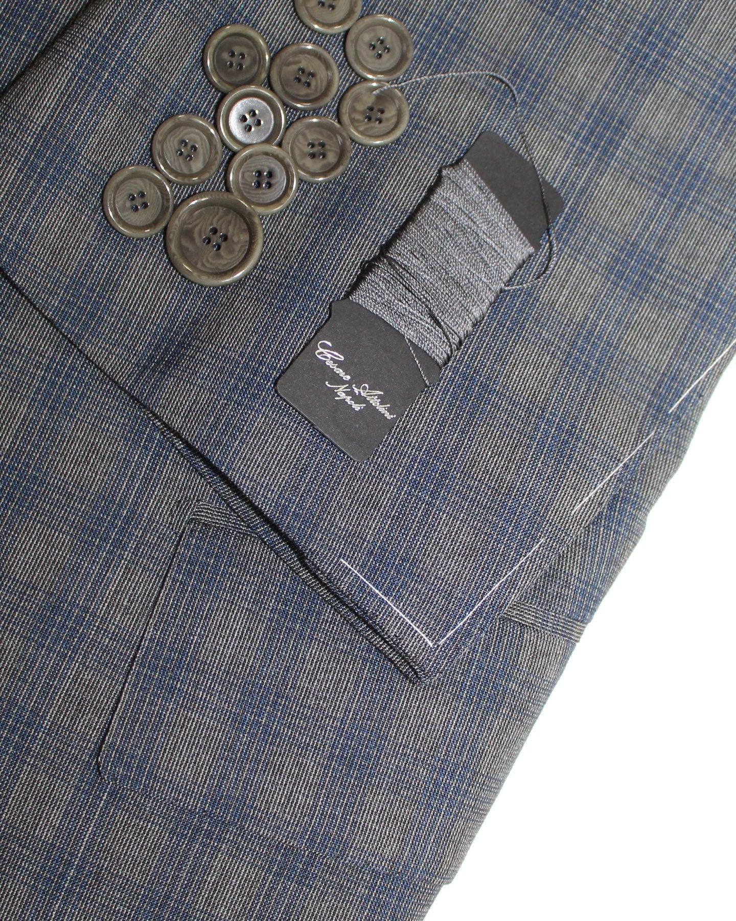 Sartorial - Authentic Cesare Attolini suit, fancy wool, dark gray / midnight blue check design, 3 button jacket, notched lapel, flat front pants, men collection, hand made in Italy. Genuine Cesare Attolini Napoli, authentic Italian sartorial clothes for men. Shop discount Attolini suits.