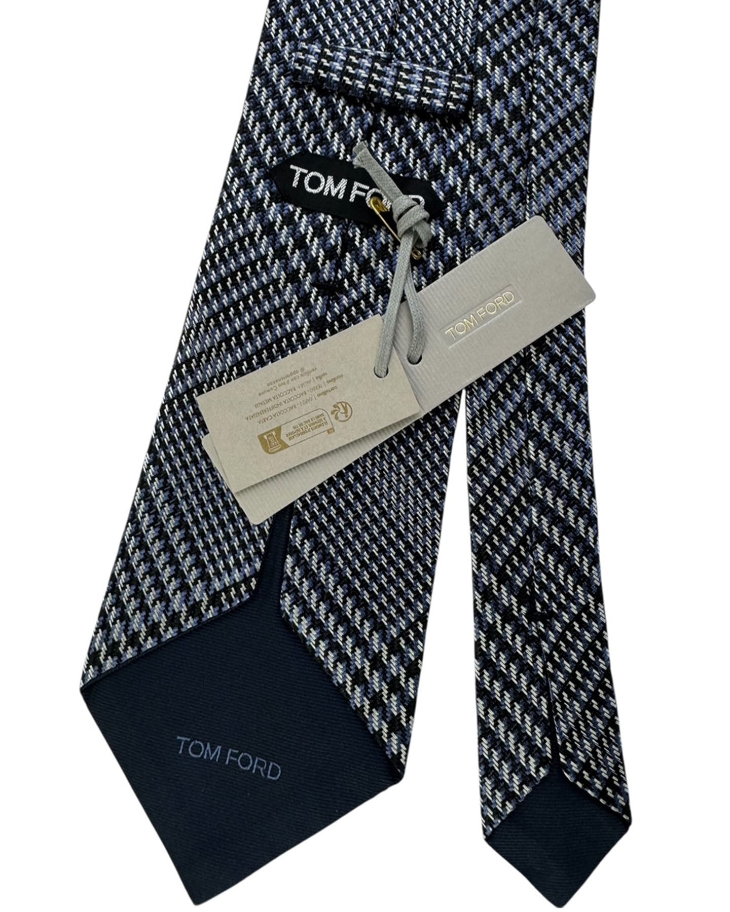 Authentic Tom Ford tie, silver black lavender plaid check tie, jacquard silk, hand made in Italy. Shop the genuine Tom Ford collection men's ties, scarves and bow ties at outlet prices.