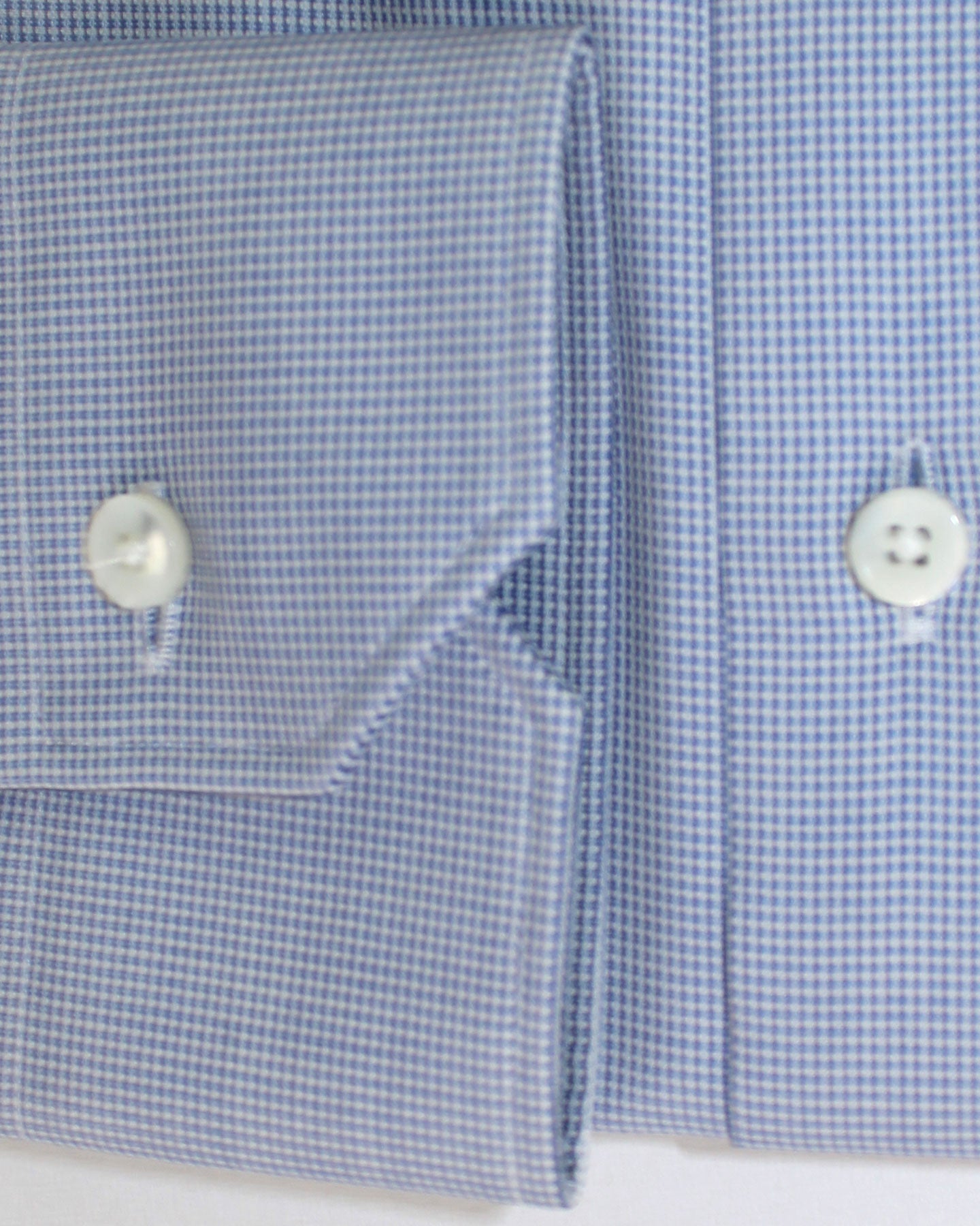 Genuine Ermenegildo Zegna dress shirt, regular fit (close to modern fit), white royal blue pattern, cotton fabrics, spread collar. Luxury men dress shirts. Authentic Ermenegildo Zegna shirts, ties and accessories at outlet prices.