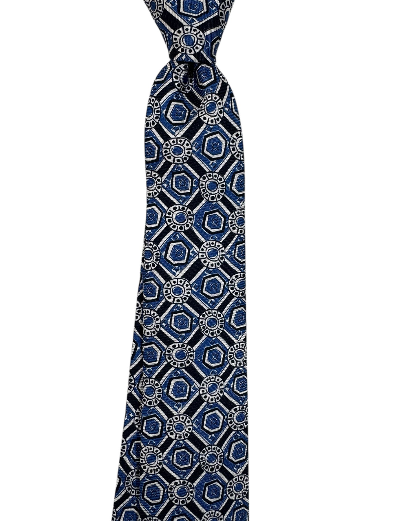 Authentic Sartorio sevenfold tie, dark blue/ white design, hand made in Italy. Sartorio is a sartorial brand from Napoli, owned by Kiton. Sartorio ties at outlet prices.