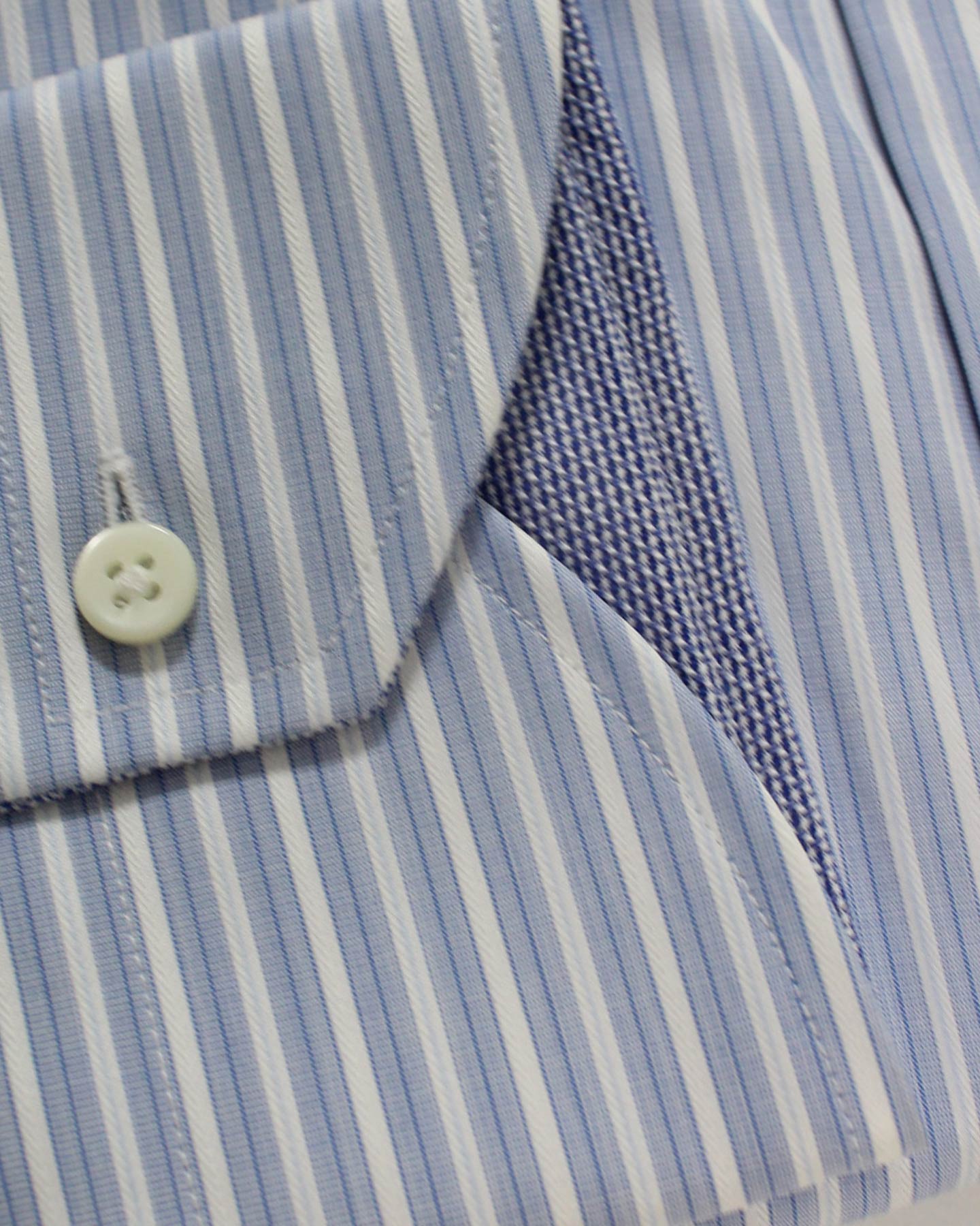 Genuine Canali dress shirt, modern fit, blue white navy stripes design, cutaway spread collar, made in Italy. Classic men dress shirt, original Canali men collection. View all discount Canali dress shirts.