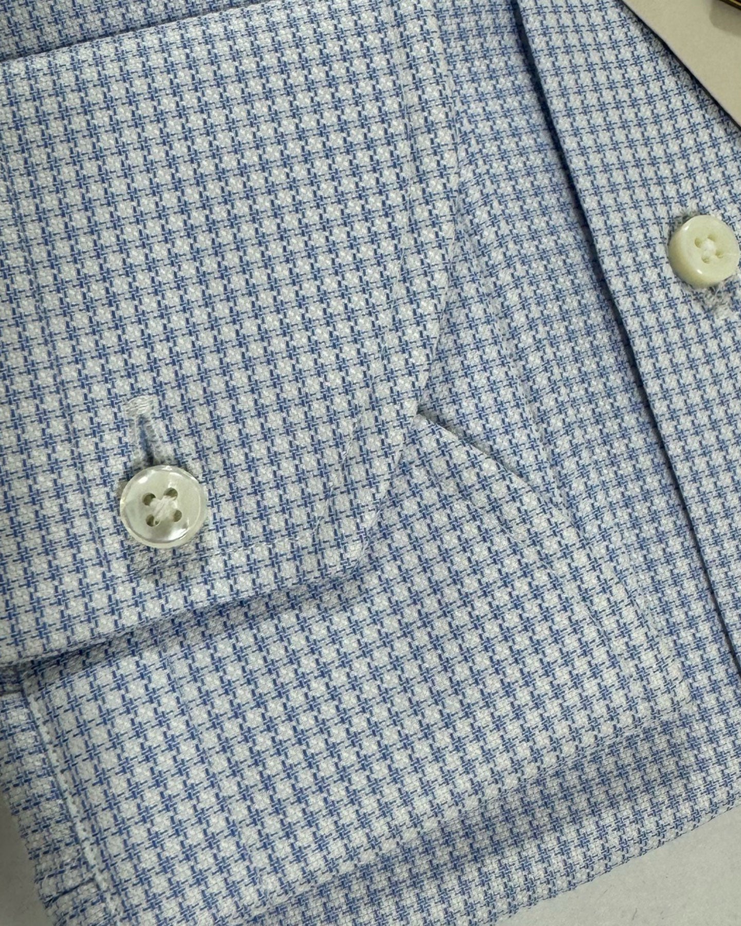 SALE - Genuine Canali dress shirt, EXCLUSIVE COLLECTION, modern fit, blue white patterned houndstooth design, pointed collar, made in Italy. Classic men dress shirt, original Canali men collection. View all discount Canali dress shirts.