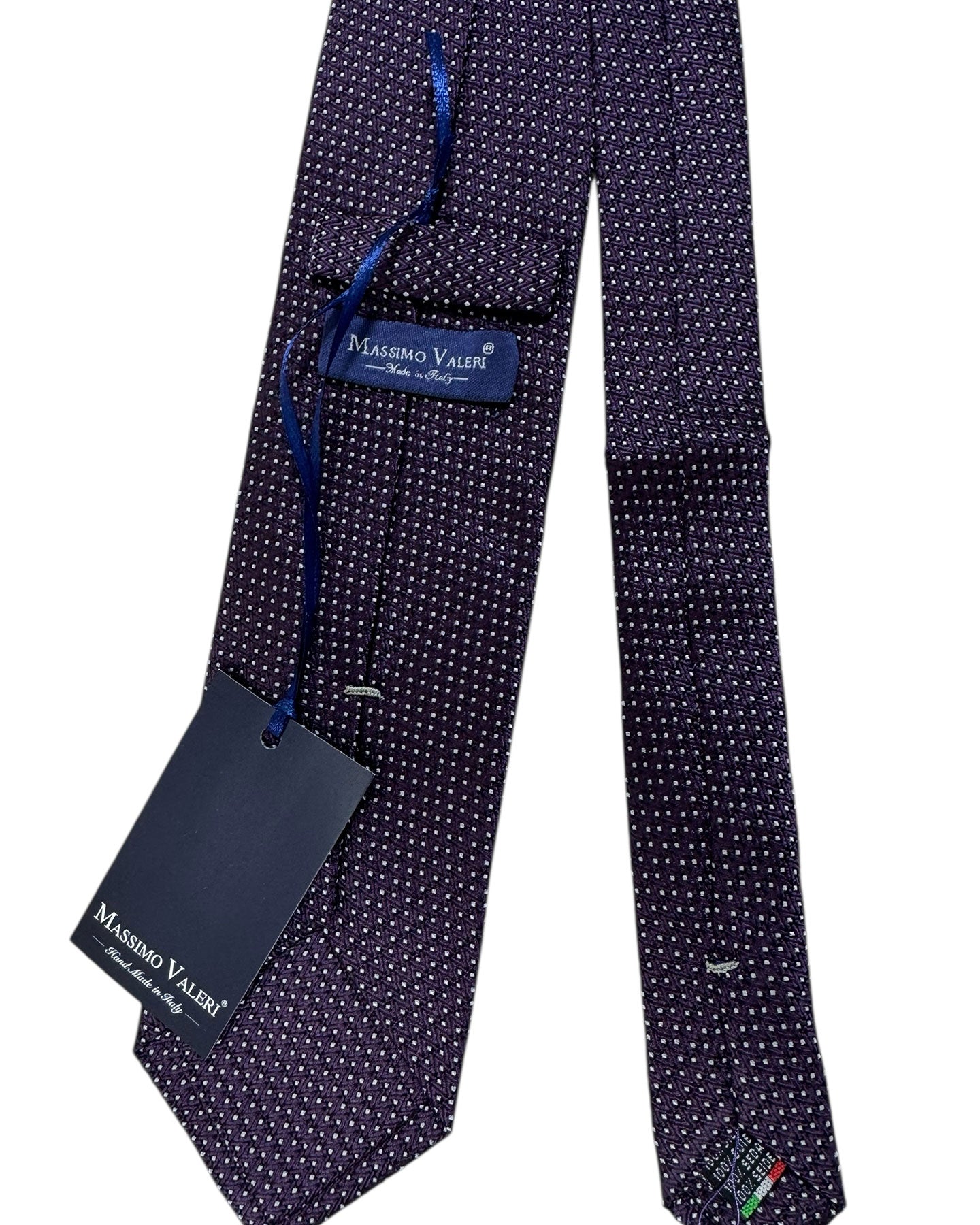 Hand made in Italy: Massimo Valeri extra long tie, dark purple silver micro dots design, silk, hand made in Italy. Fine quality men designer ties, extra long, hand made in Italy.