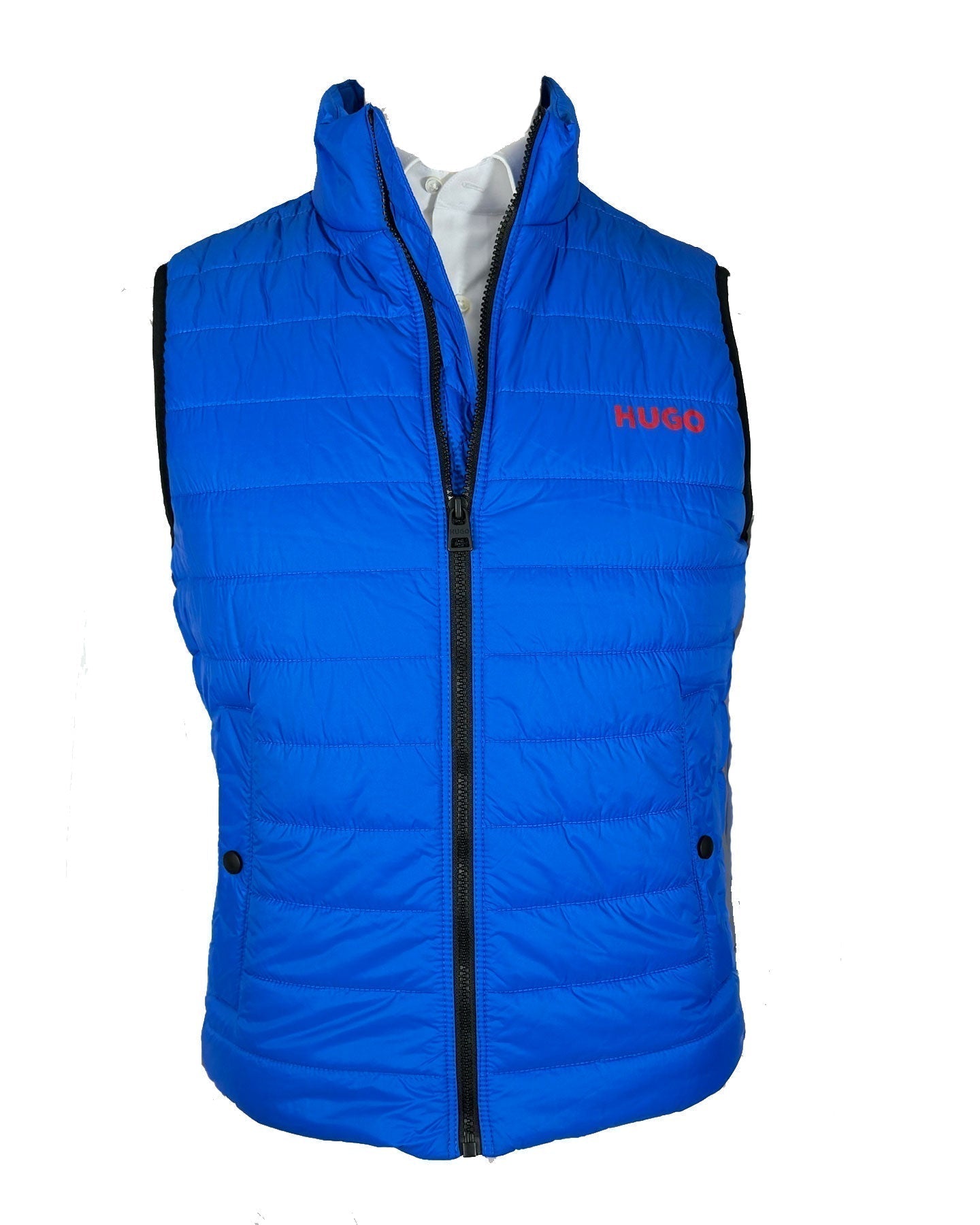 FINAL SALE - New HUGO collection: Genuine Hugo Boss padded gilet, water repellent, bright blue, slim fit. Authentic Hugo Boss men clothes at outlet prices.Shop Men Designer Vests.