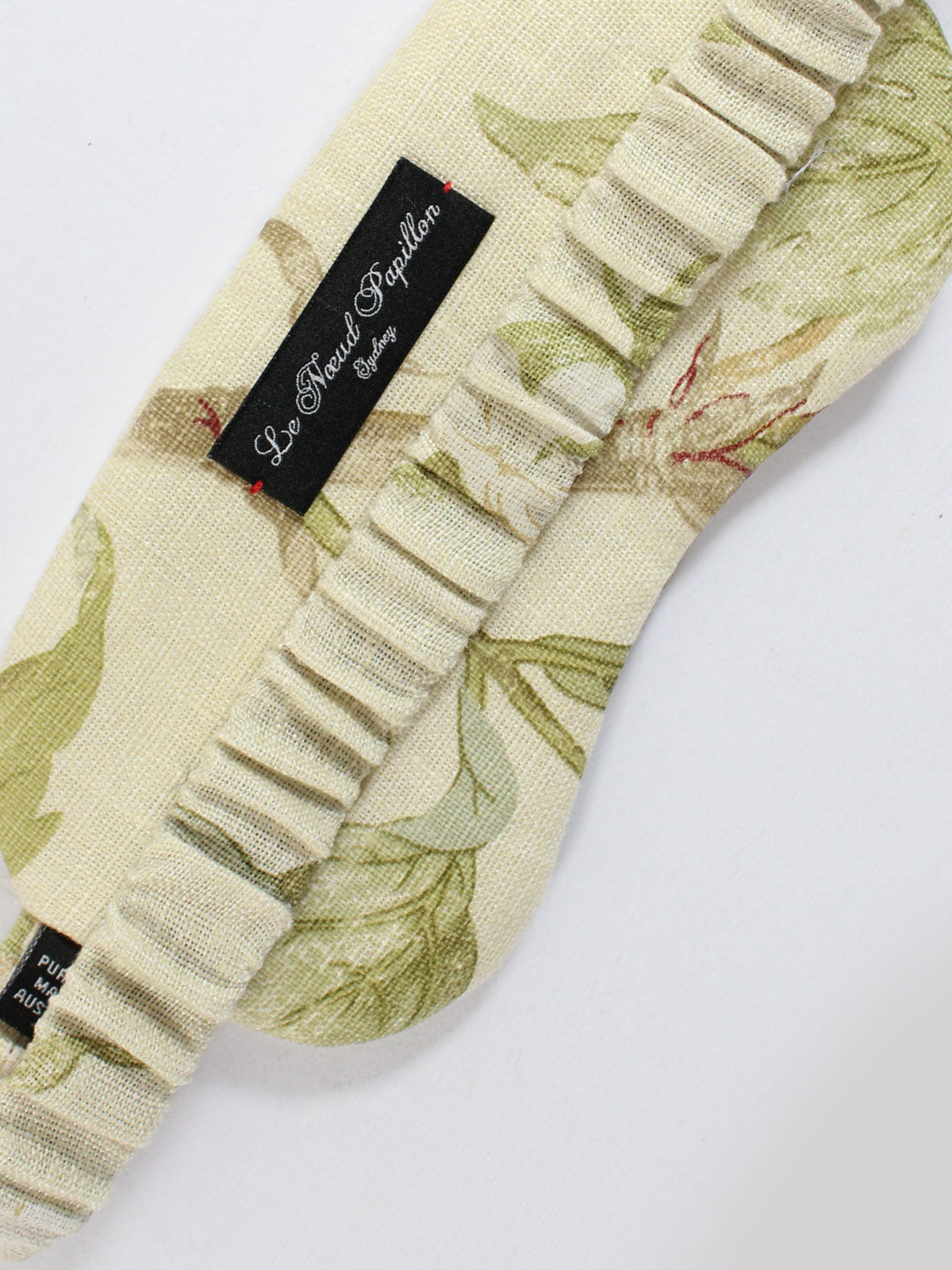 New: Le Noeud Papillon silk eye shades with white beige floral design, silk, hand made in Australia. Le Noeud Papillon specializes in top quality bow ties and accessories using fancy Italian silks. More silk eye shades.