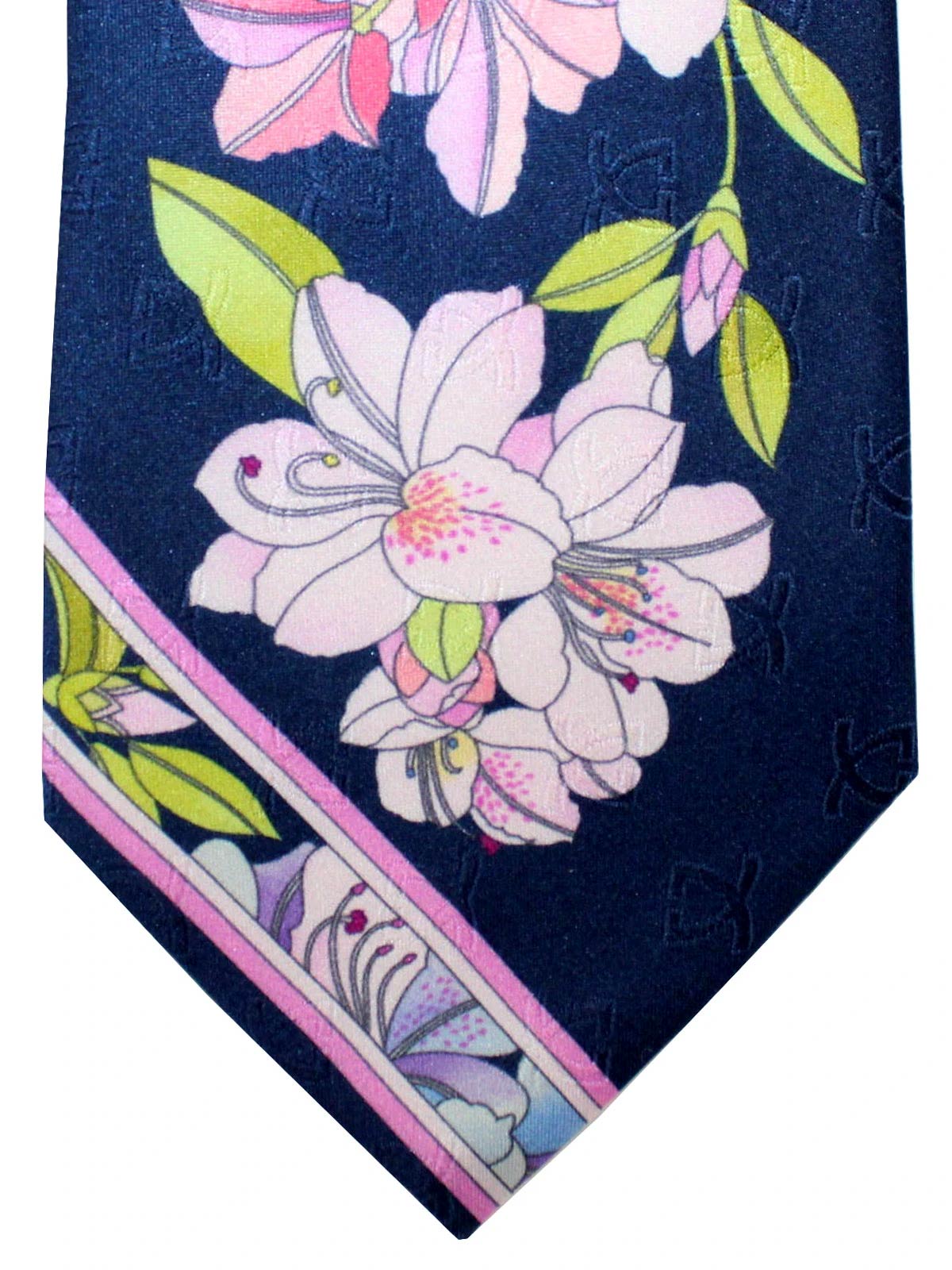 Leonard Paris Silk Tie Dark Blue Pink Floral - Luxury Italian Necktie