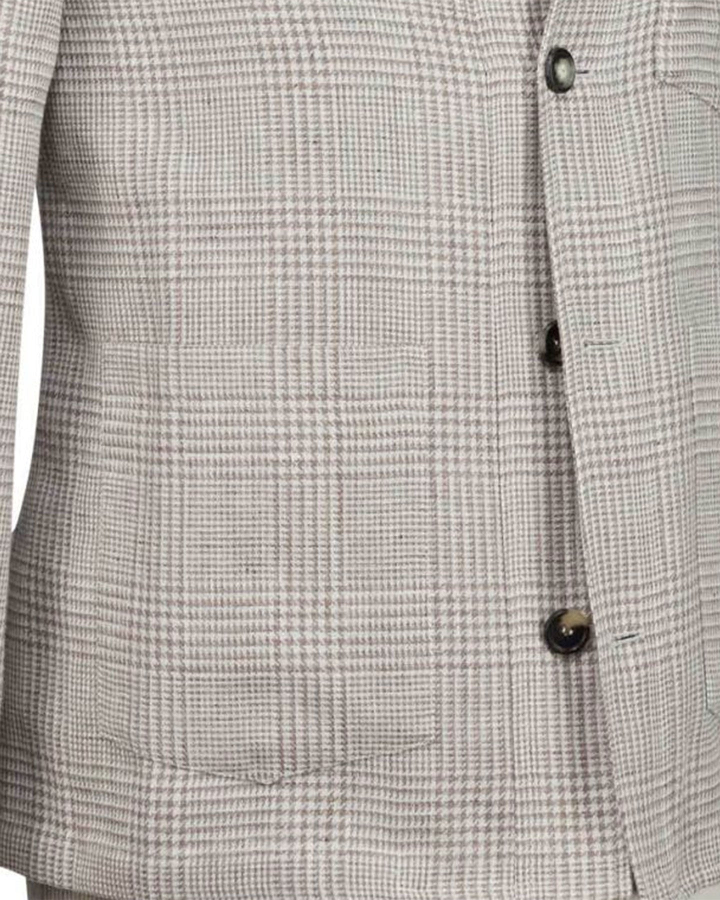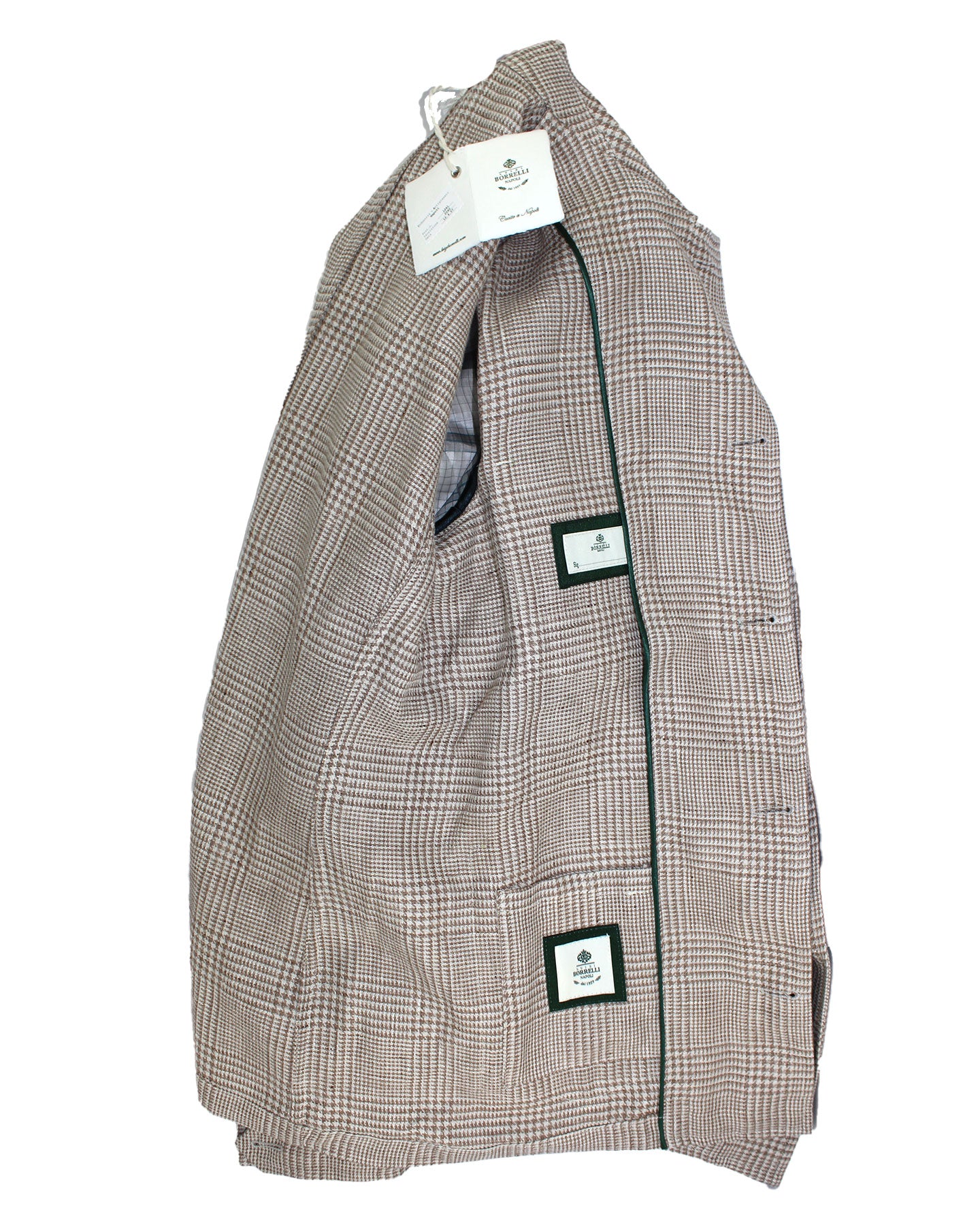 Luigi Borrelli Coat Taupe-Gray Glen Check Wool Linen EU 44 / US 34