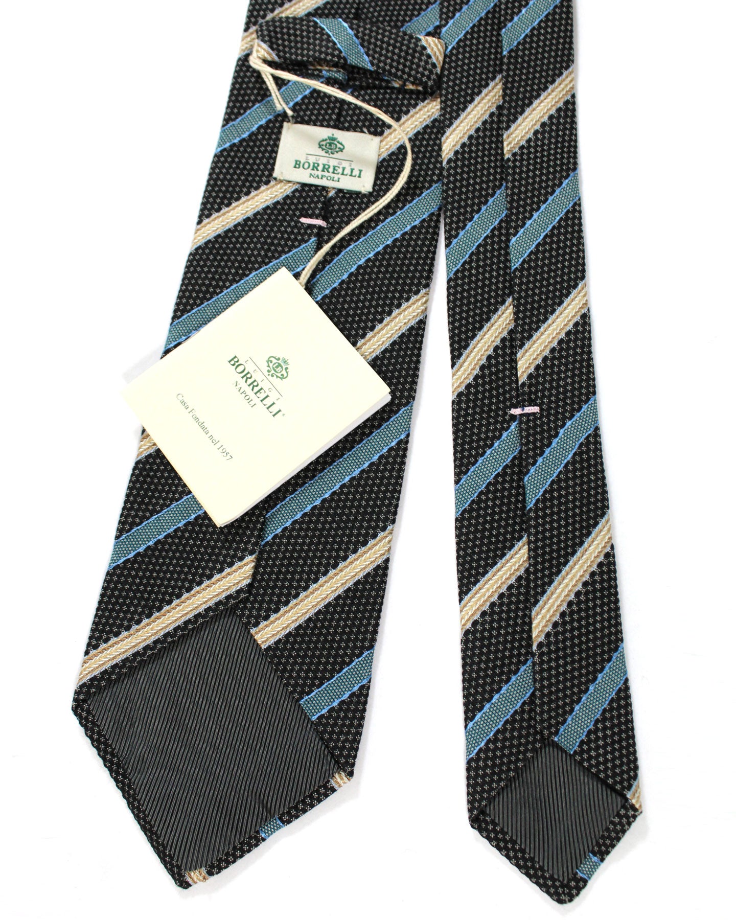 Luigi Borrelli Silk Tie Black Blue Beige Stripes SALE