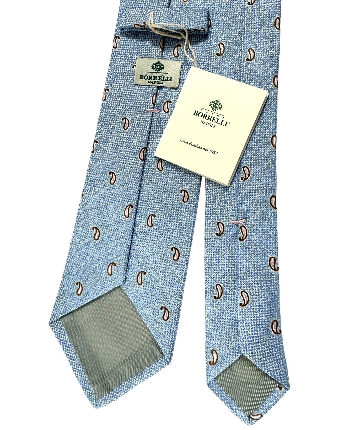 CLEARANCE - Genuine Luigi Borrelli silk tie, blue / silver mini paisley design, sartorial, hand made in Italy. Authentic Luigi Borrelli Napoli collection neckwear online at outlet prices.