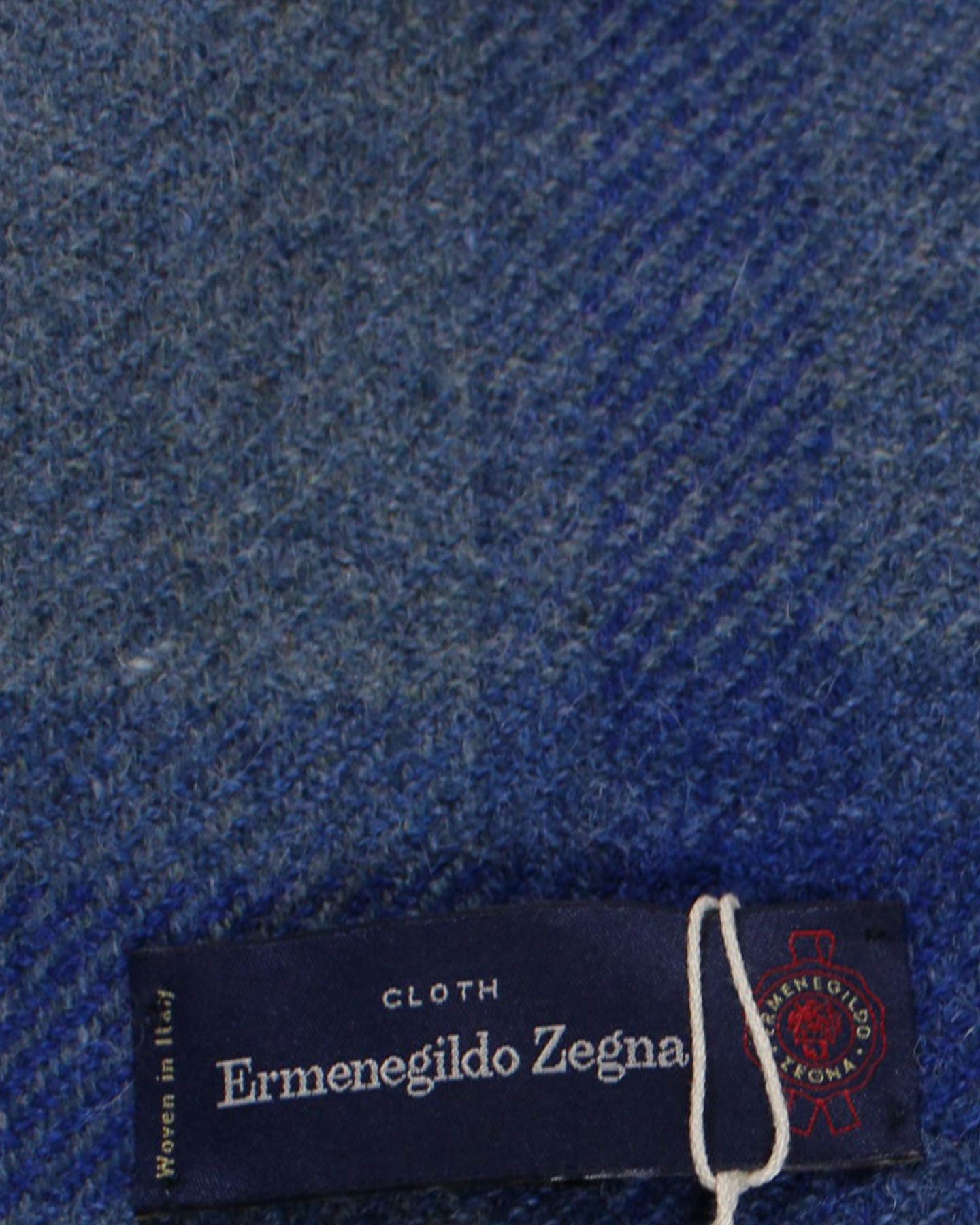 Authentic Ermenegildo Zegna throw blanket, gray/ royal blue plaid design, fancy virgin wool/ alpaca/ cashmere, large size, fringe, made in Italy. Great throw for you sofa, chair or bed! Luxurious and top quality fabrics as you might expect from Ermenegildo Zegna. Shop Ermenegildo Zegna throw blankets at outlet prices.