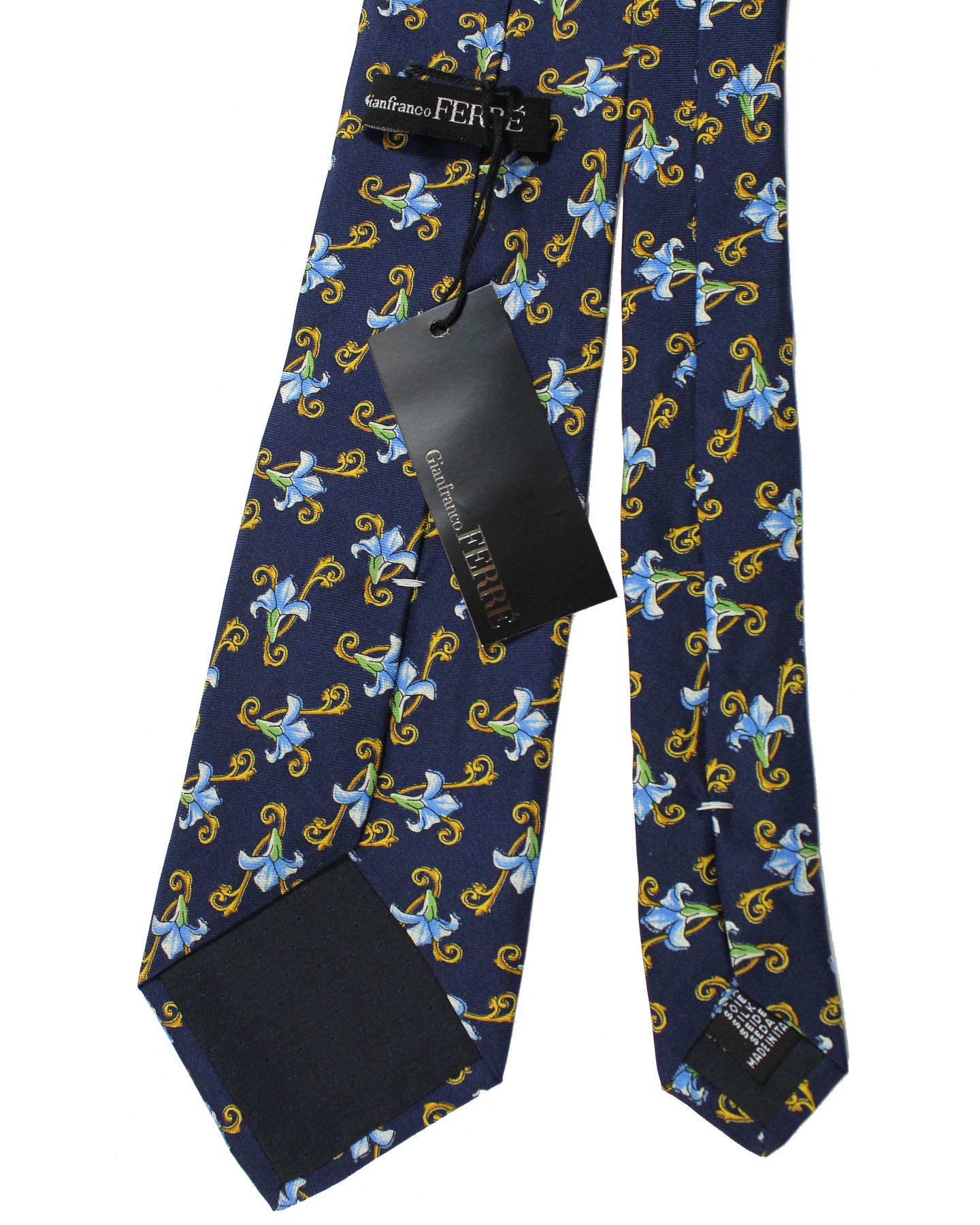 SALE - Genuine silk Gianfranco Ferre tie, navy design, vintage, hand made in Italy. Discount GFF Gianfranco Ferre men collection online.