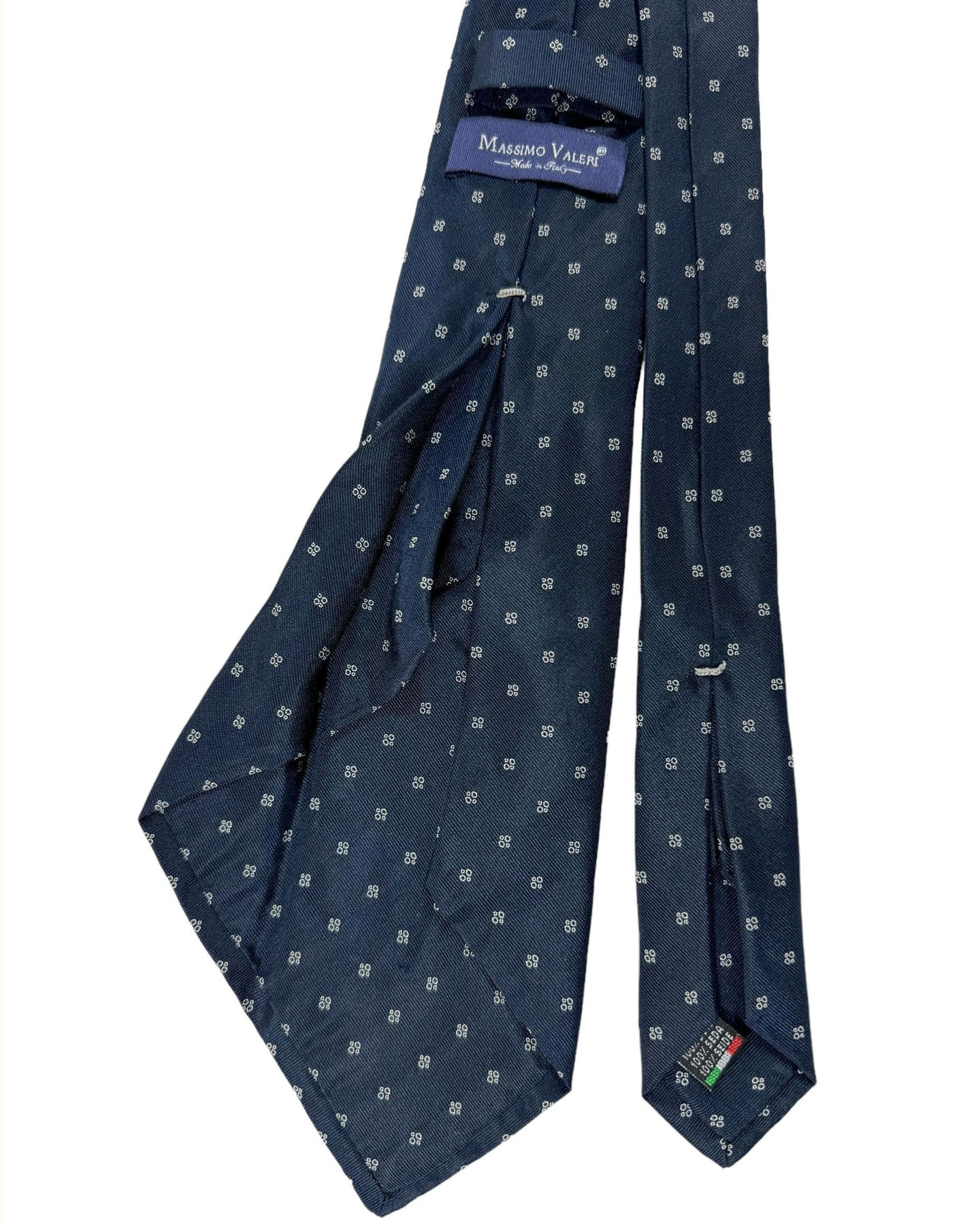 Massimo Valeri 11 Fold Tie Midnight Blue Silver Micro Pattern - Elevenfold Necktie