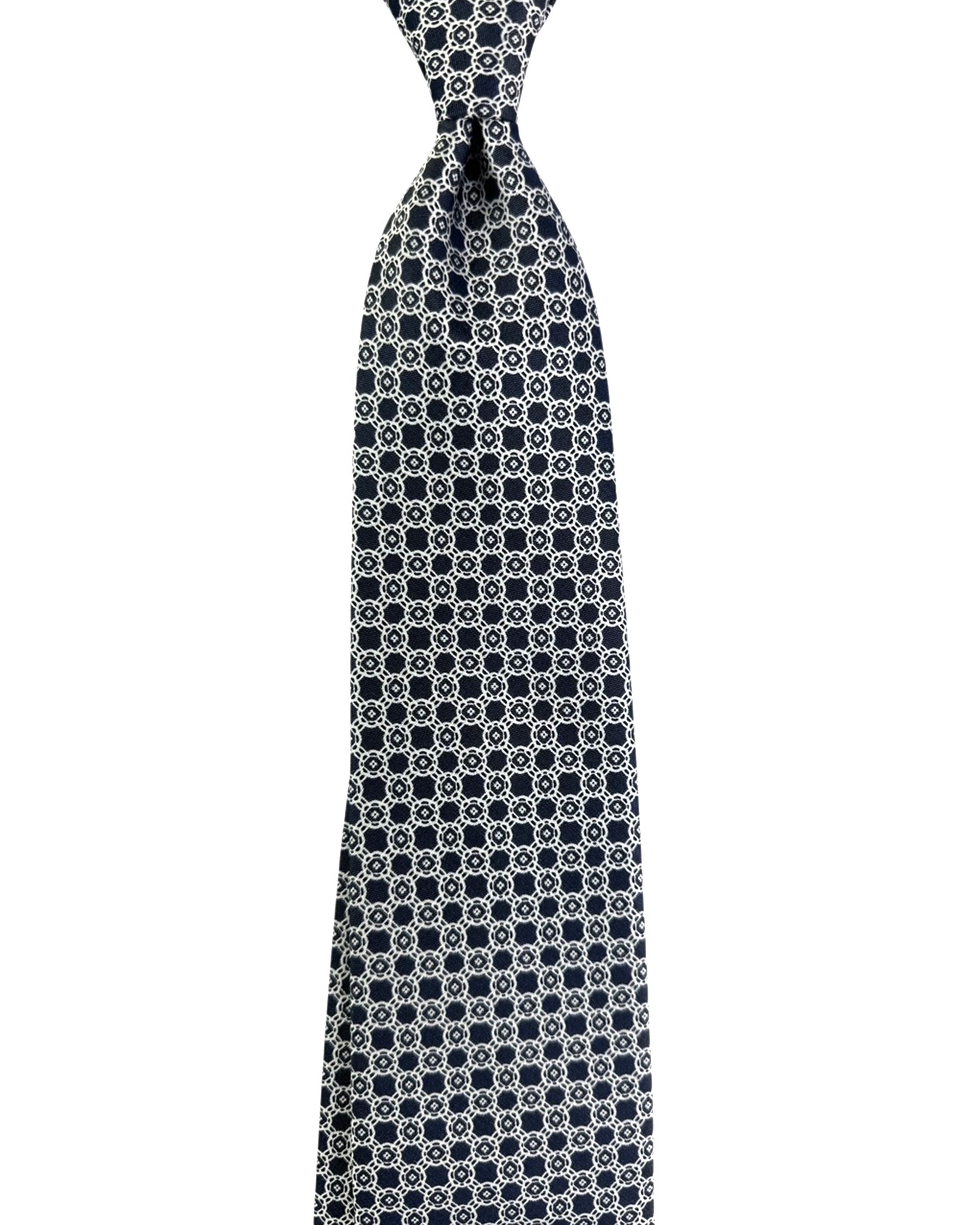 Authentic Stefano Ricci tie, midnight blue silver geometric design, printed silk, hand made in Italy. Genuine Stefano Ricci ties at outlet prices. Luxury men designer ties and accessories.