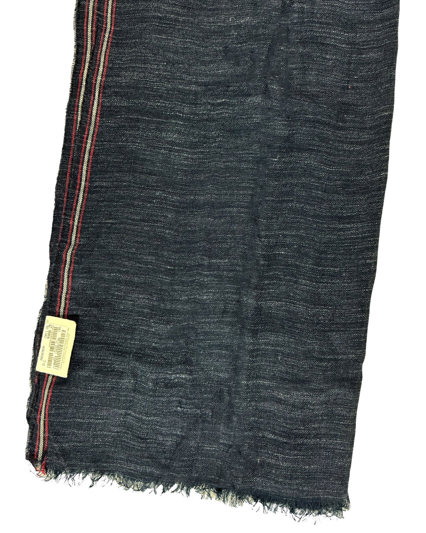 - SALE - Men collection: Authentic Brunello Cucinelli scarf, dark blue with silver/ dust pink stripe silk/ linen, short fringe, made in Italy. Genuine Brunello Cucinelli men suits, scarves, ties, dress shirts, the very best fabrics and quality.