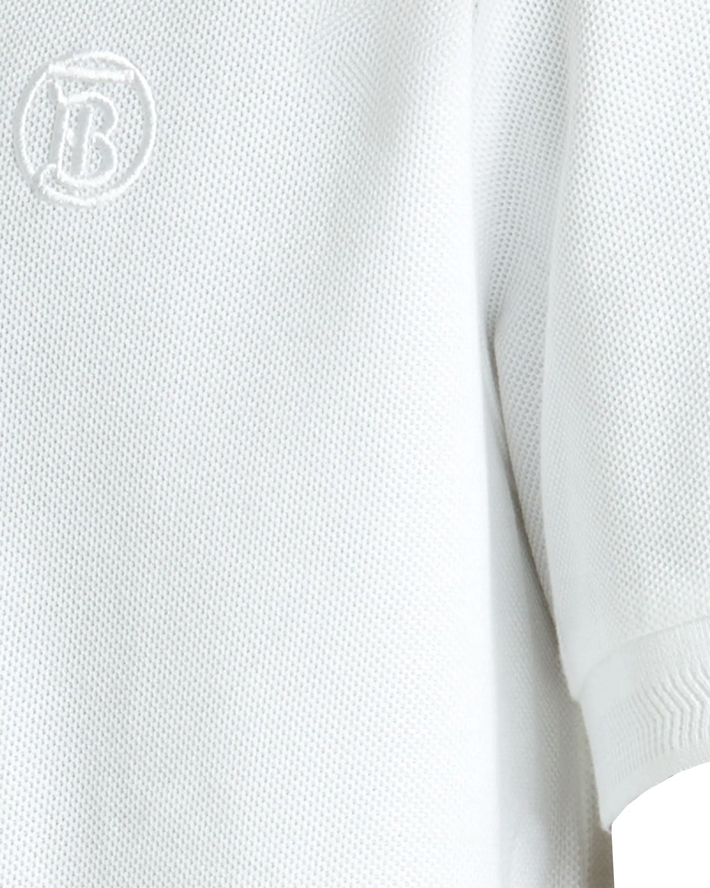 New 2024 Collection - Genuine Burberry men polo shirt, regular fit, white with popular embroidered TB (Thomas Burberry Monogram) logo at chest and Burberry Check at placket, style 'Eddie', cotton piqué. Authentic discount Burberry men clothes at outlet prices, men designer fashion.