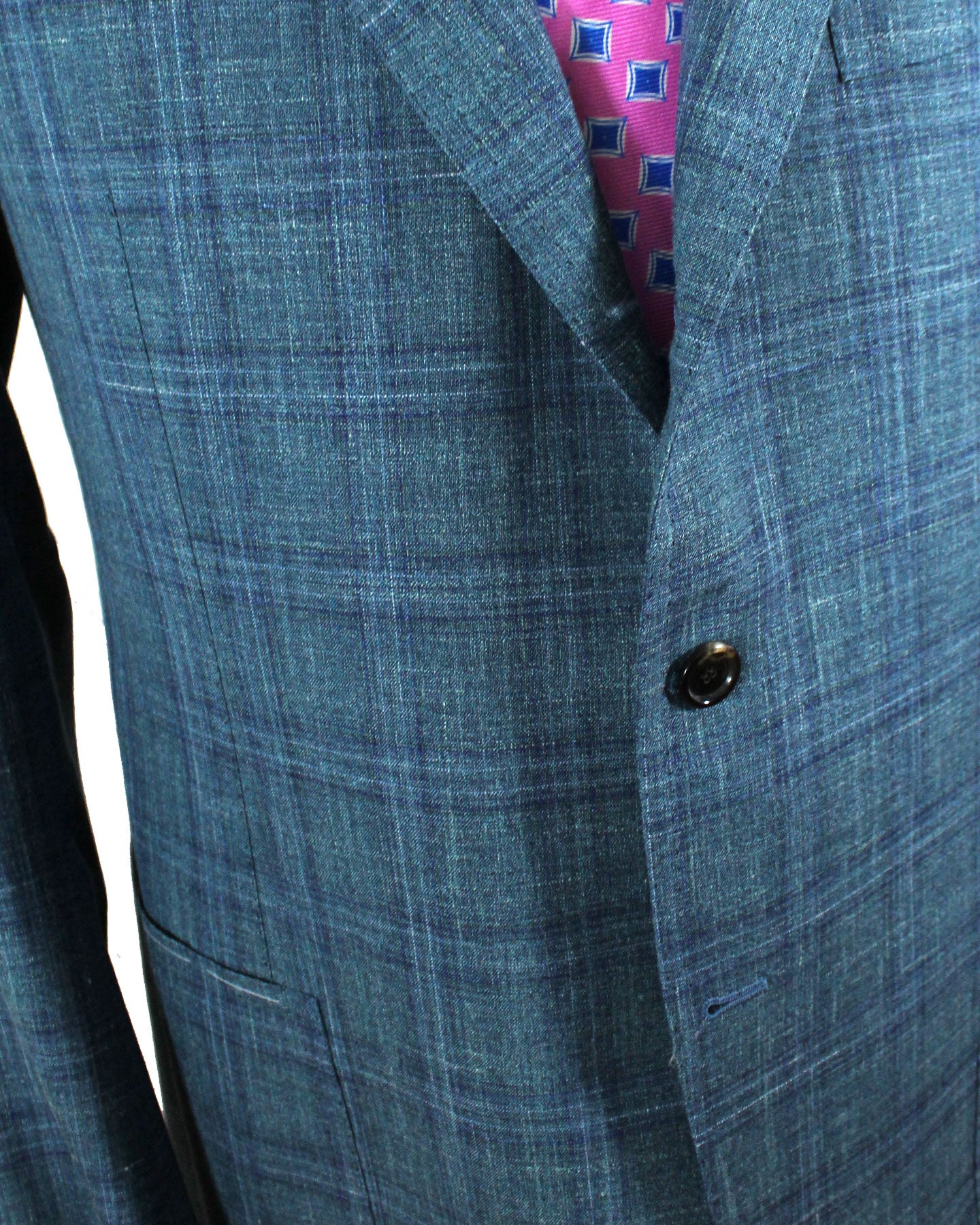 Sartorial - Genuine Cesare Attolini sport coat, unlined construction, subtle blue windowpane design, 3 button jacket (rolling 3rd), wool/ silk/ linen, hand made in Italy. Genuine Cesare Attolini Napoli, authentic Italian sartorial clothes for men. Luxury bespoke men clothes at outlet prices.