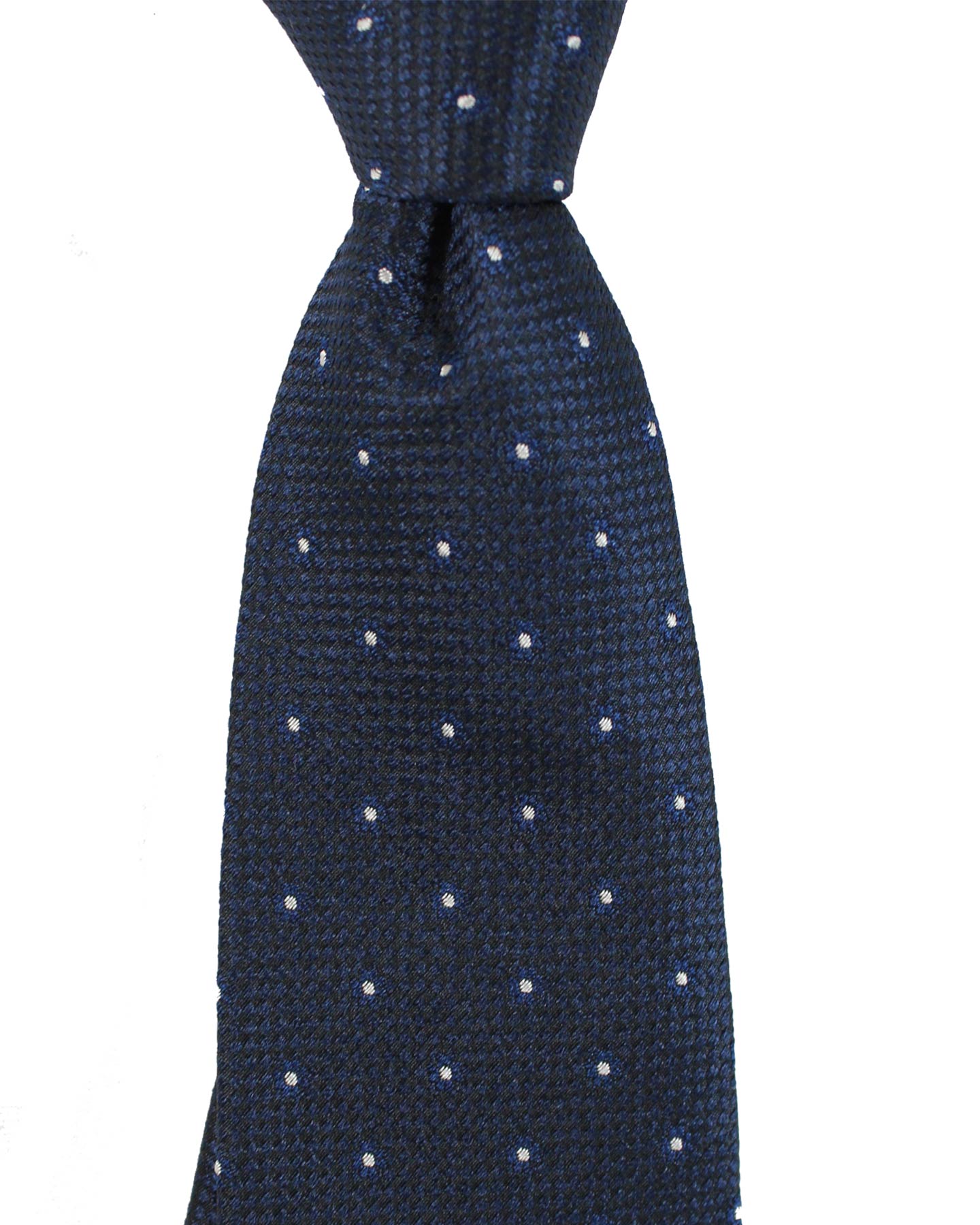 - SALE - Jacquard silk elevenfold tie, dark blue black background with silver dotted design, sartorial quality, jacquard silk, Massimo Valeri, hand made in Italy. Sartorial quality men elevenfold ties at outlet prices.