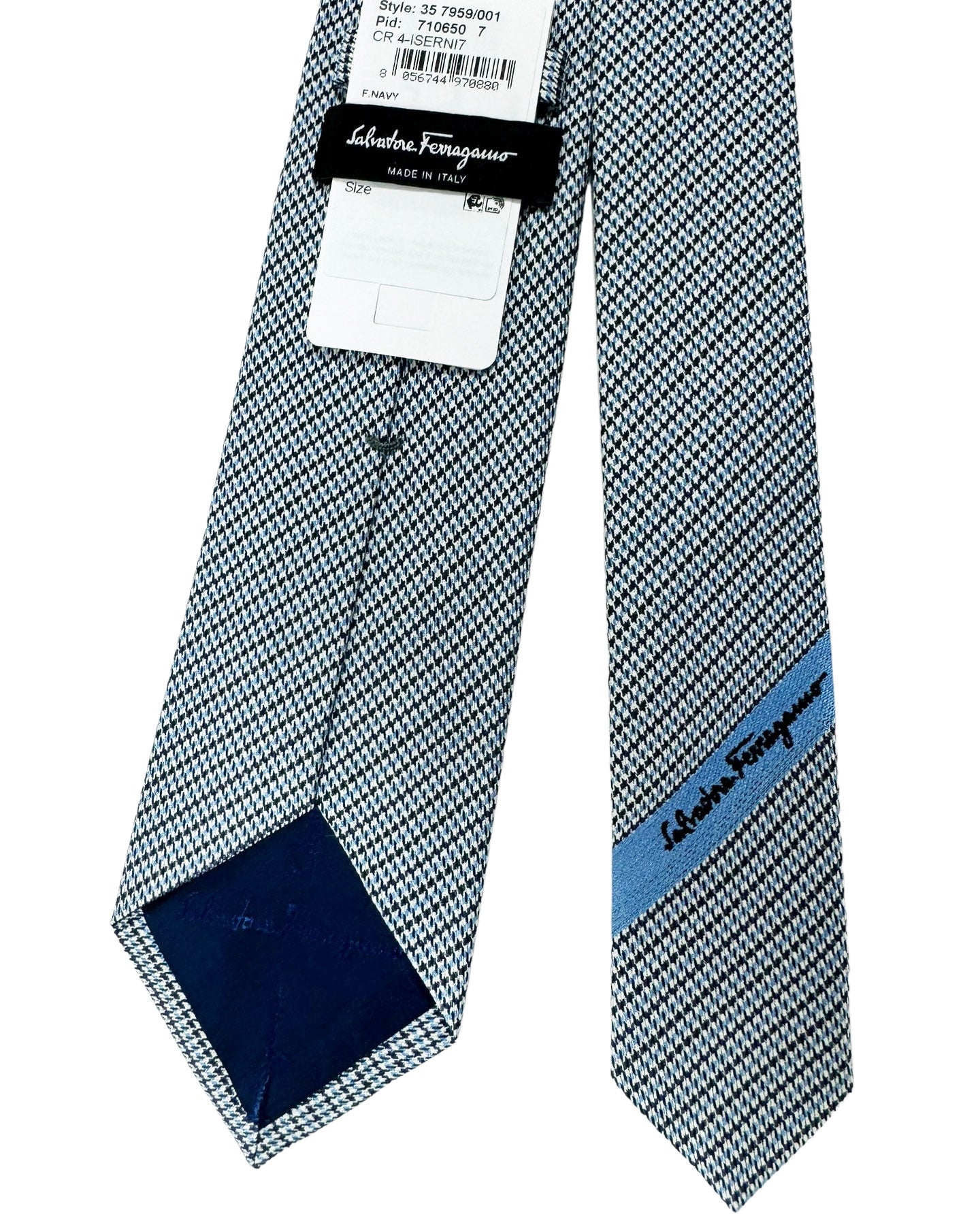 Salvatore Ferragamo Tie Houndstooth Blue - Narrow Necktie SALE