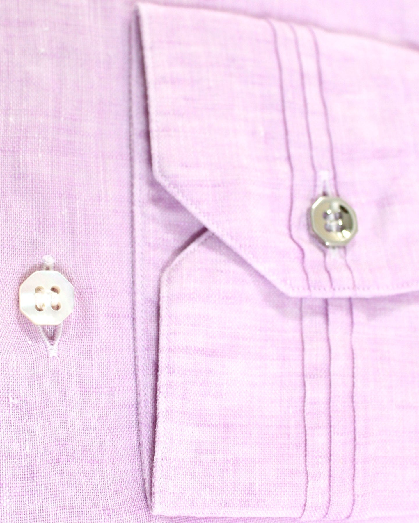 Genuine Stefano Ricci dress shirt, light pink solid design, band collar, signature SR octagonal buttons, fancy linen, hand made in Italy. Authentic Stefano Ricci luxury men shirts, high-end Italian fashion.