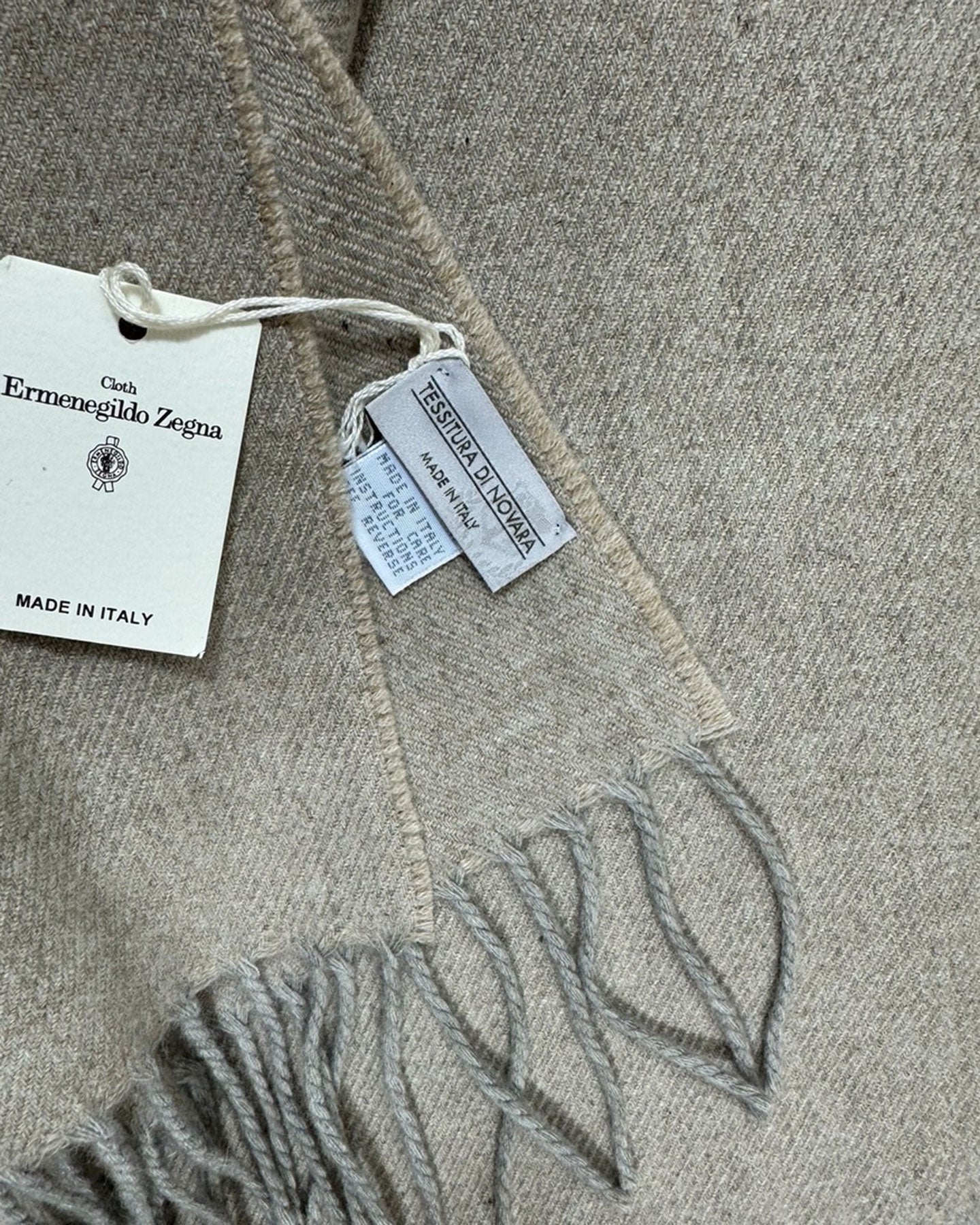 SALE - Authentic Tessitura Di Novara throw blanket, Ermenegildo Zegna cashmere fabrics, very soft, beige gray, luxury, made in Italy. Great throw for you sofa, chair or bed! Luxurious and top quality! Shop Ermenegildo Zegna throw blankets and scarves at outlet prices.