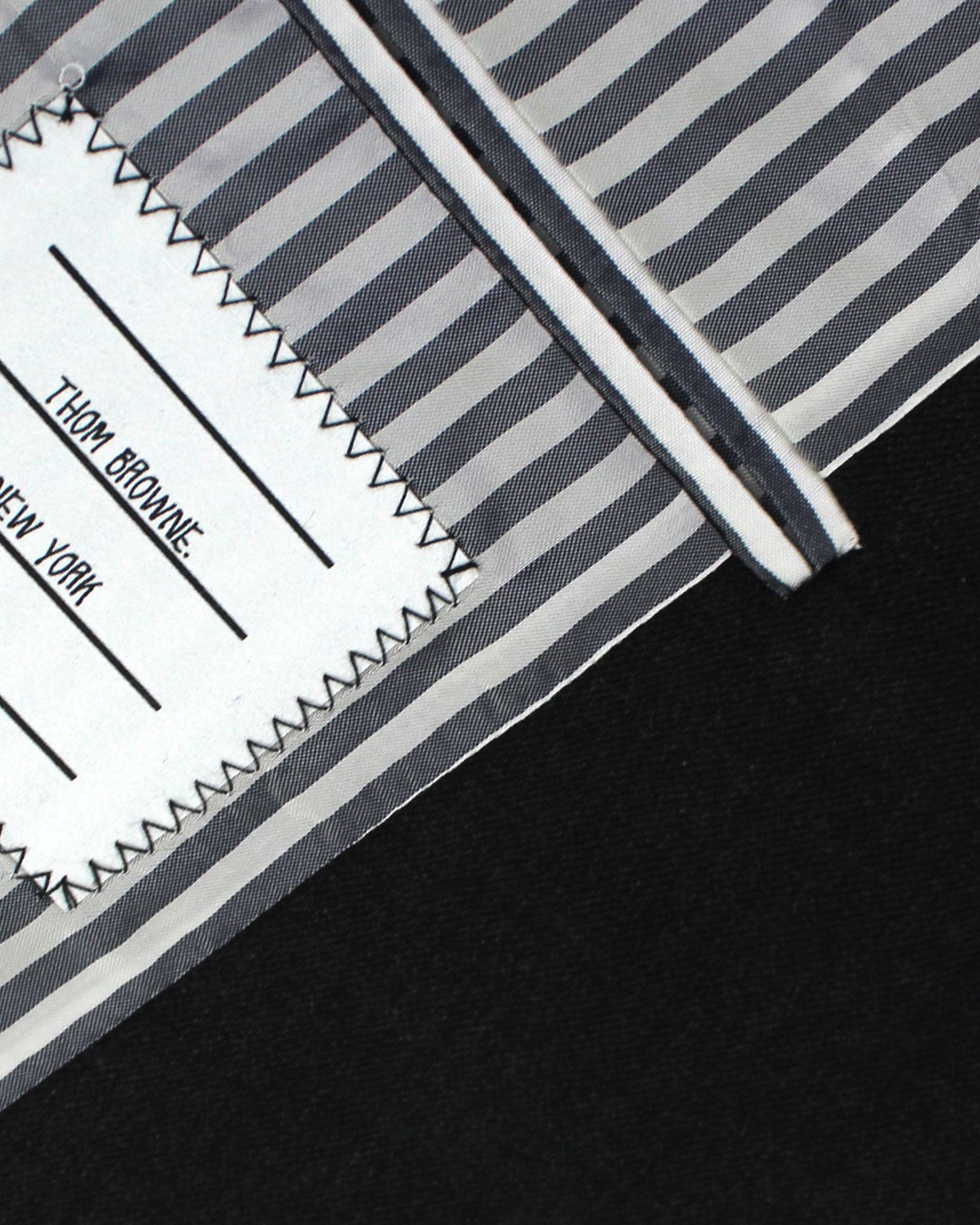 BRAND NEW! Genuine Thom Browne suit, dark charcoal gray design, button fly flat front pants, wool - super 120's, classic suit: iconic shrunken fit, higher waistline and break, hand made in Italy. Excellent quality suit with signature Thom Browne details, artisan Italian tailoring, Thom Browne sport coats and suits.