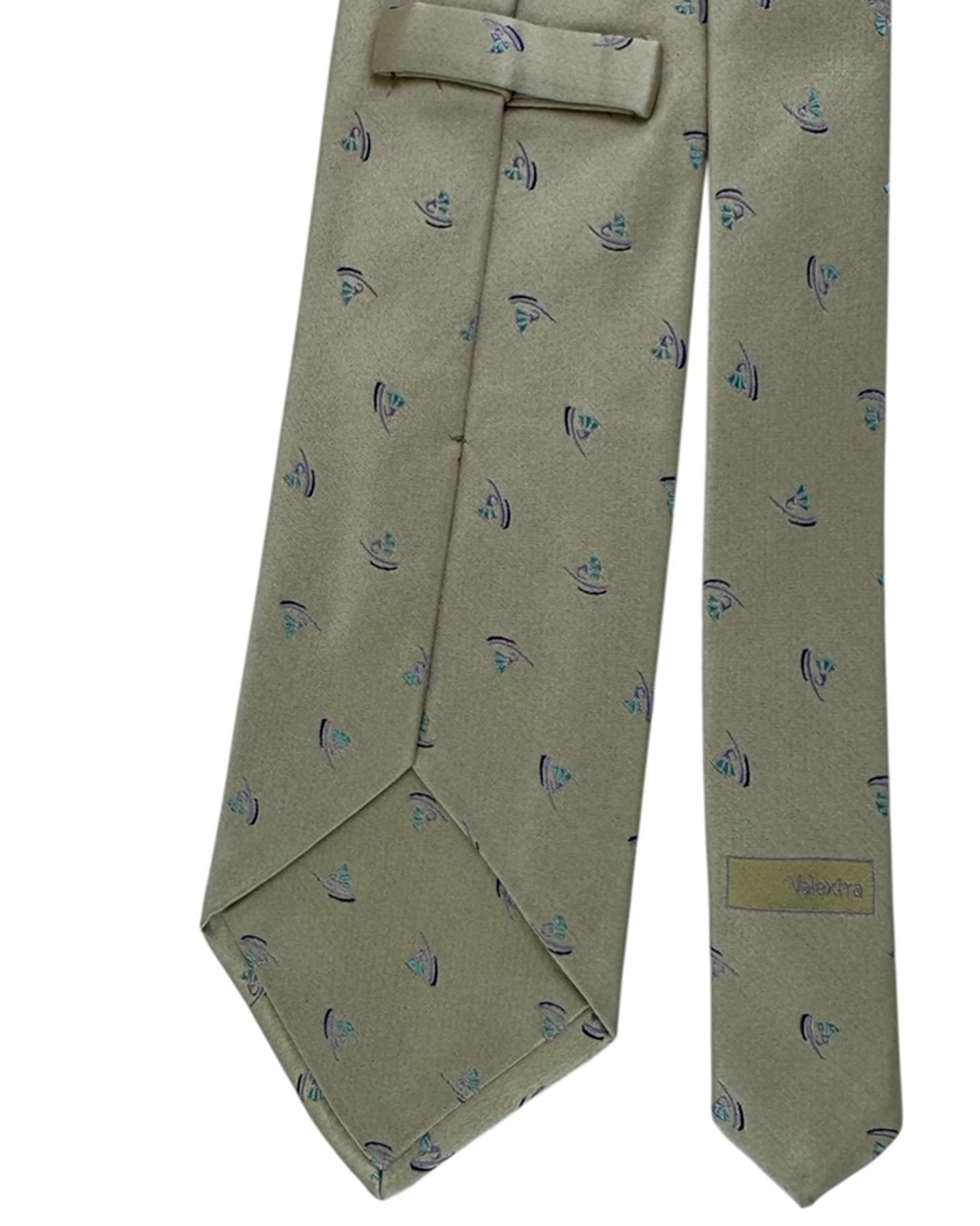 - FINAL SALE - Genuine Valextra tie, beige (slightly gray) tie featuring small embroidered detail in aqua and lilac, wide 9.5cm width, jacquard silk, self tipped, top quality, hand made in Italy. Discount luxury designer ties, Valextra men fashion accessories at outlet prices.