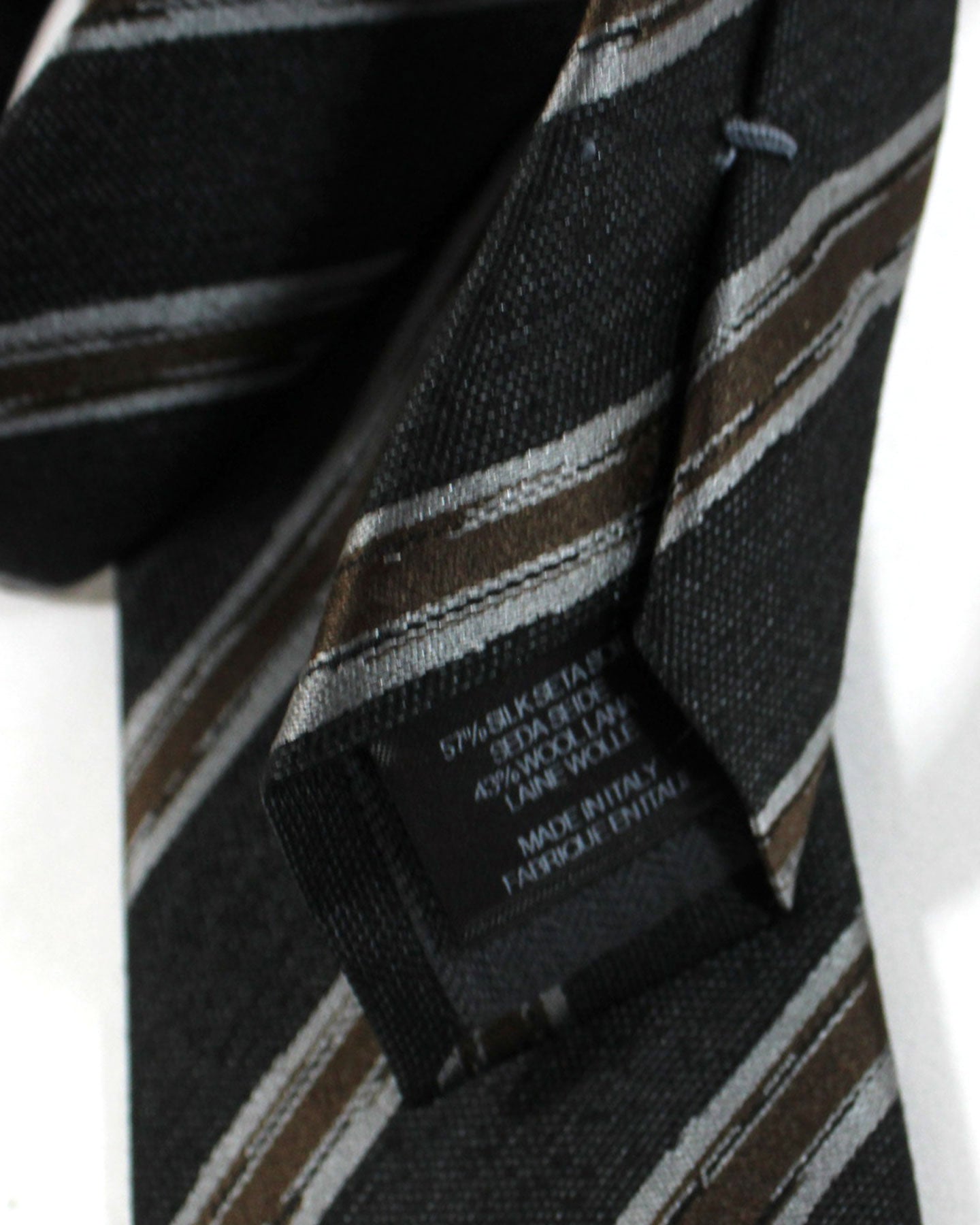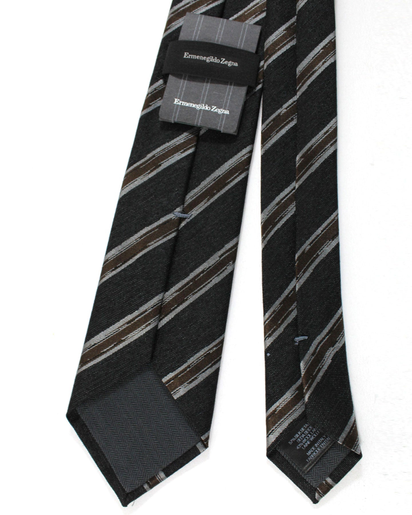 SALE - Ermenegildo Zegna silk / wool tie, charcoal gray/ brown striped pattern design, narrow cut, hand made in Italy. Authentic Ermenegildo Zegna ties, designer men collection at outlet prices. Shop luxury novelty ties.