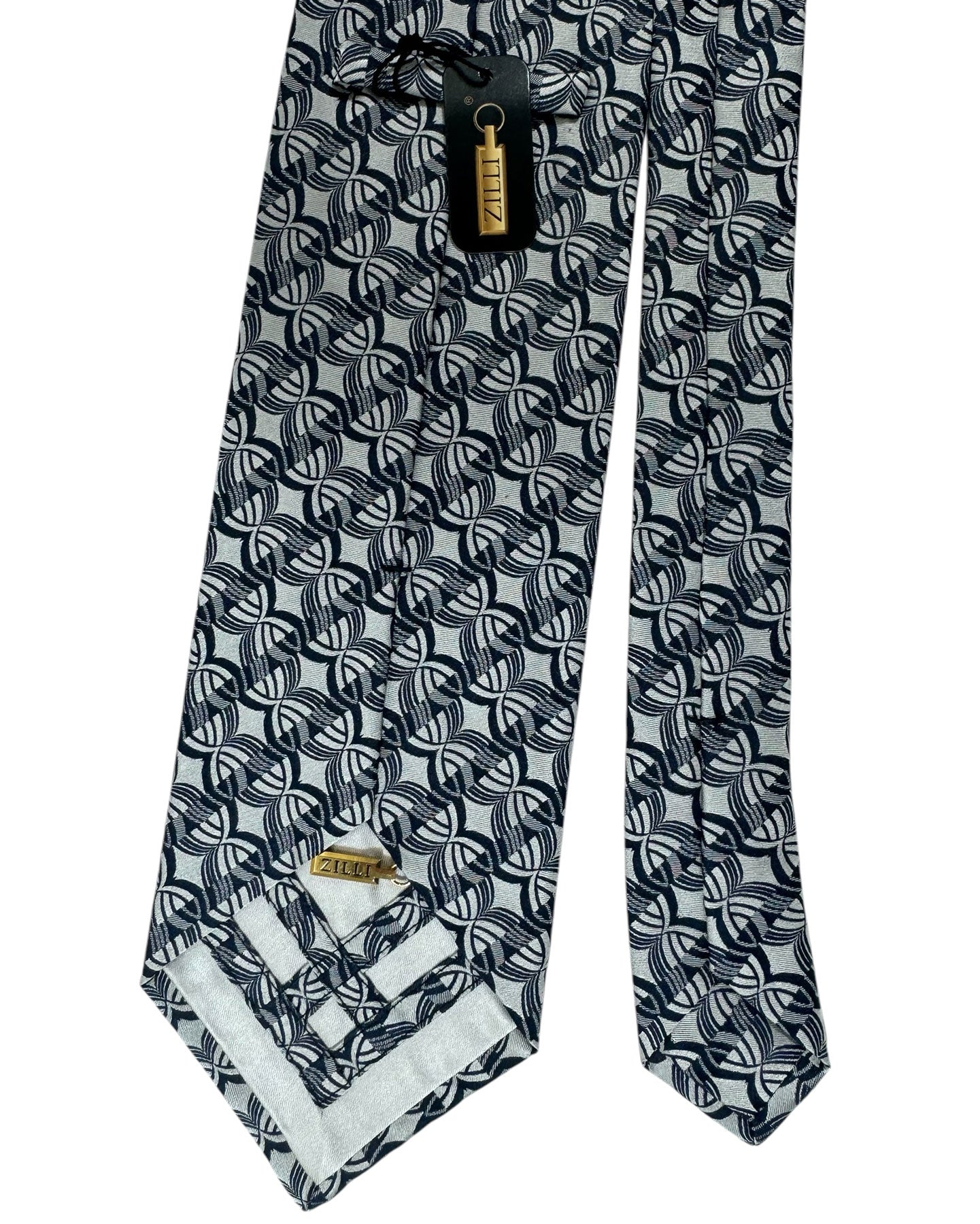 - SALE - Authentic Zilli silk tie, gray swirl and stripes design, silk, hand made in Italy. Genuine Zilli men collection. Top quality discount designer ties at outlet prices.