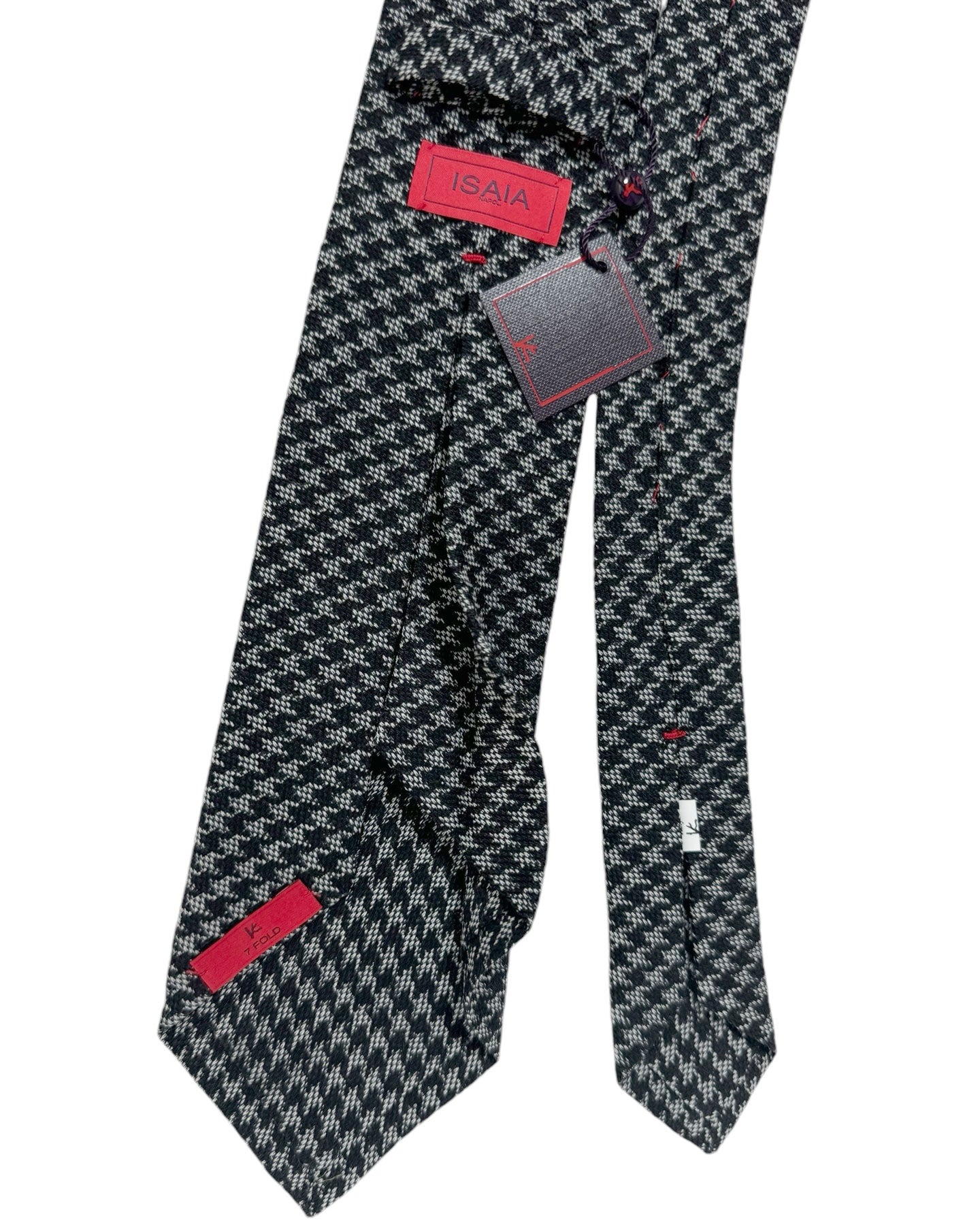 Fall/ Winter Collection: Authentic Isaia tie, black / gray houndstooth design, medium-heavy weight wool / silk, sevenfold construction, hand made in Italy. Genuine Isaia Napoli men clothes, sartorial quality. Isaia men collection at outlet prices.