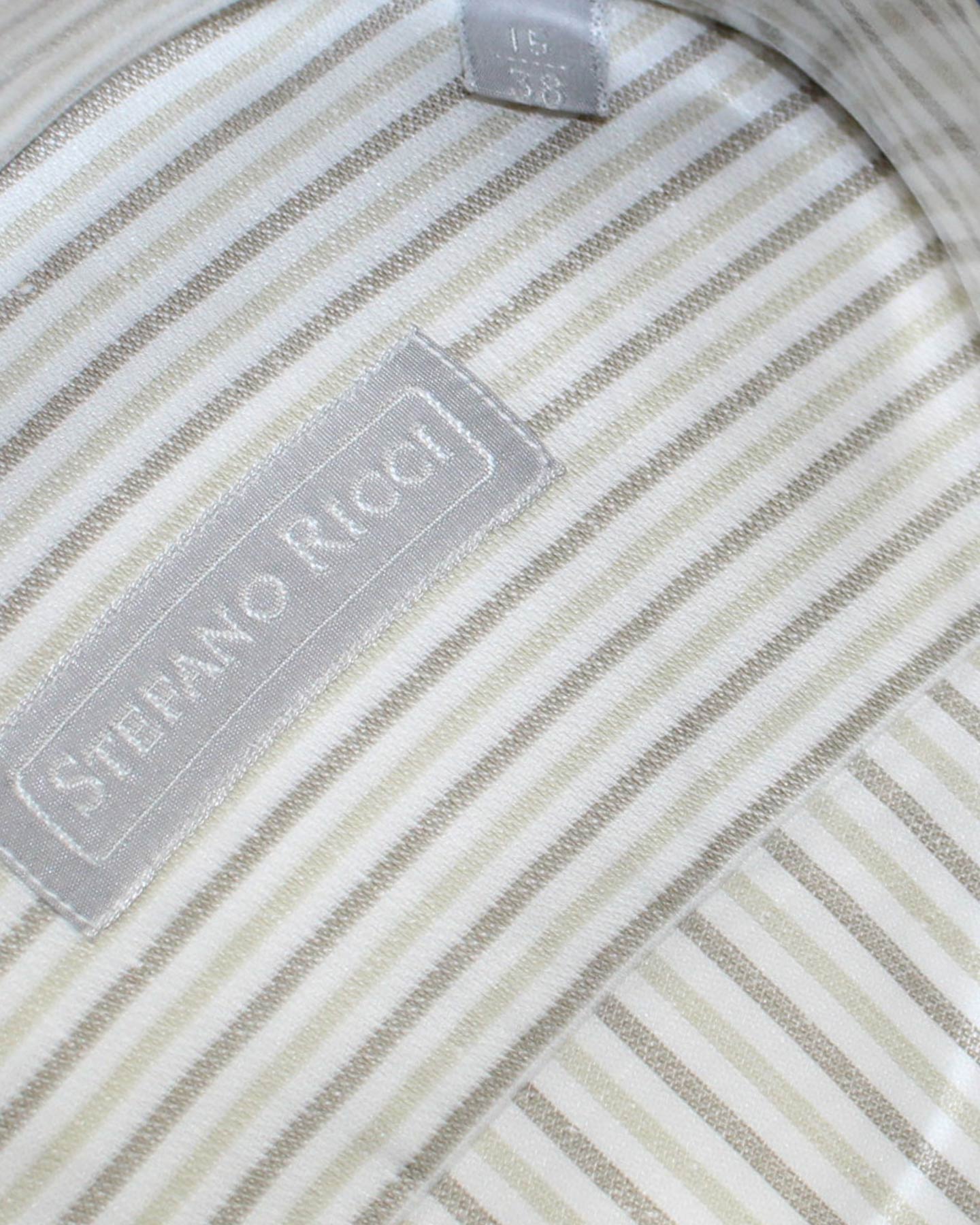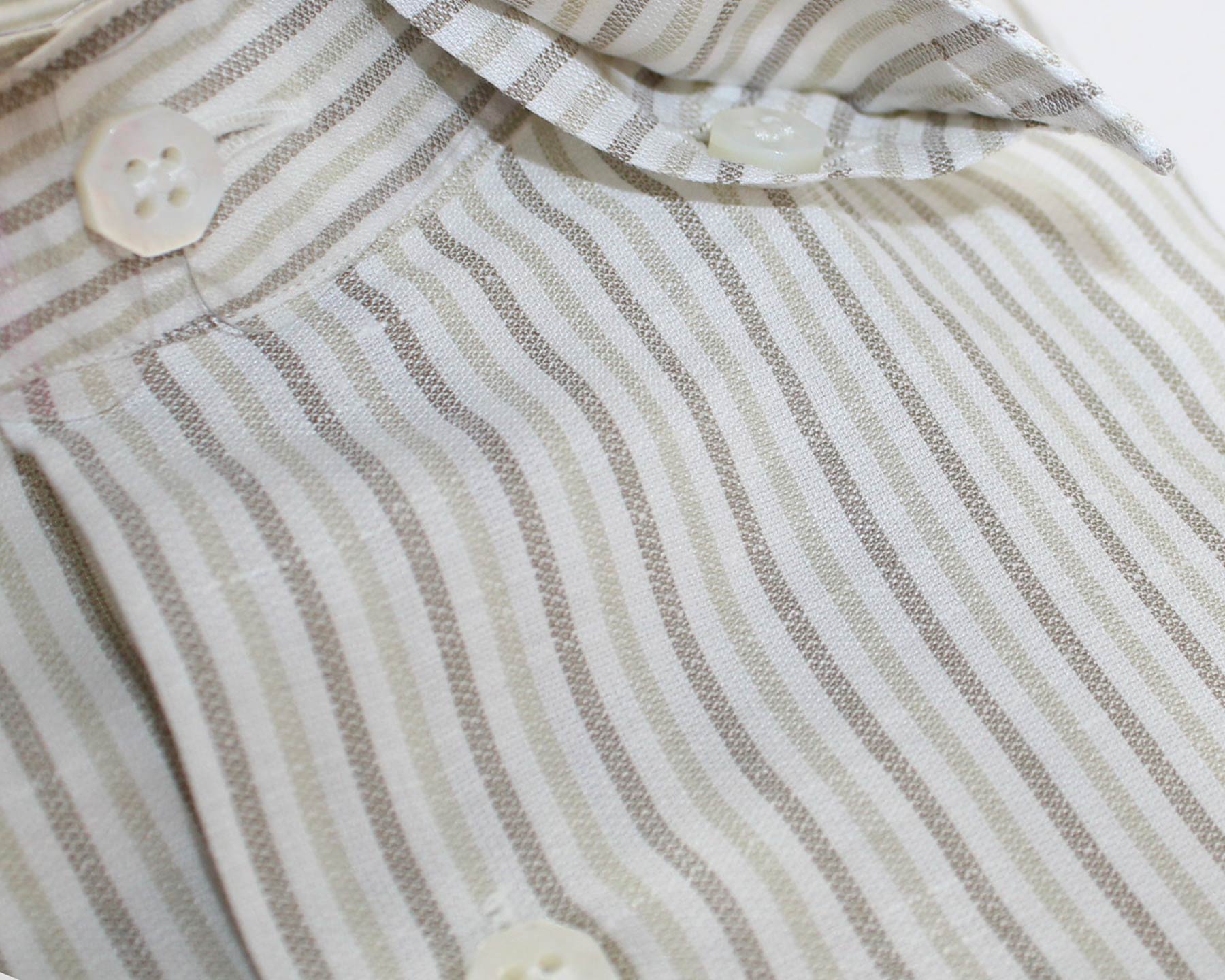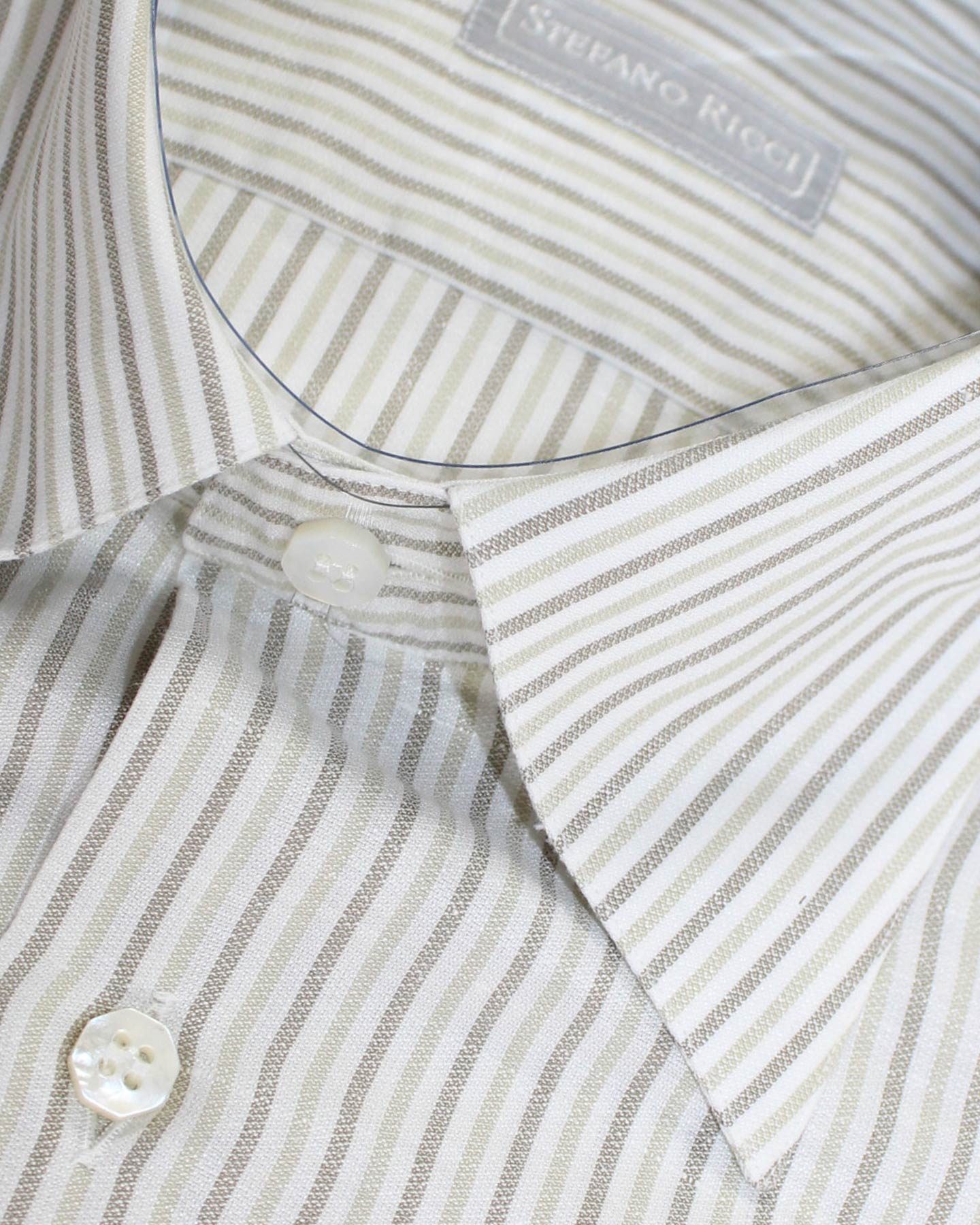 Stefano Ricci Shirt Slim Fit White Taupe Stripes - Linen Cotton 38 - 15 SALE