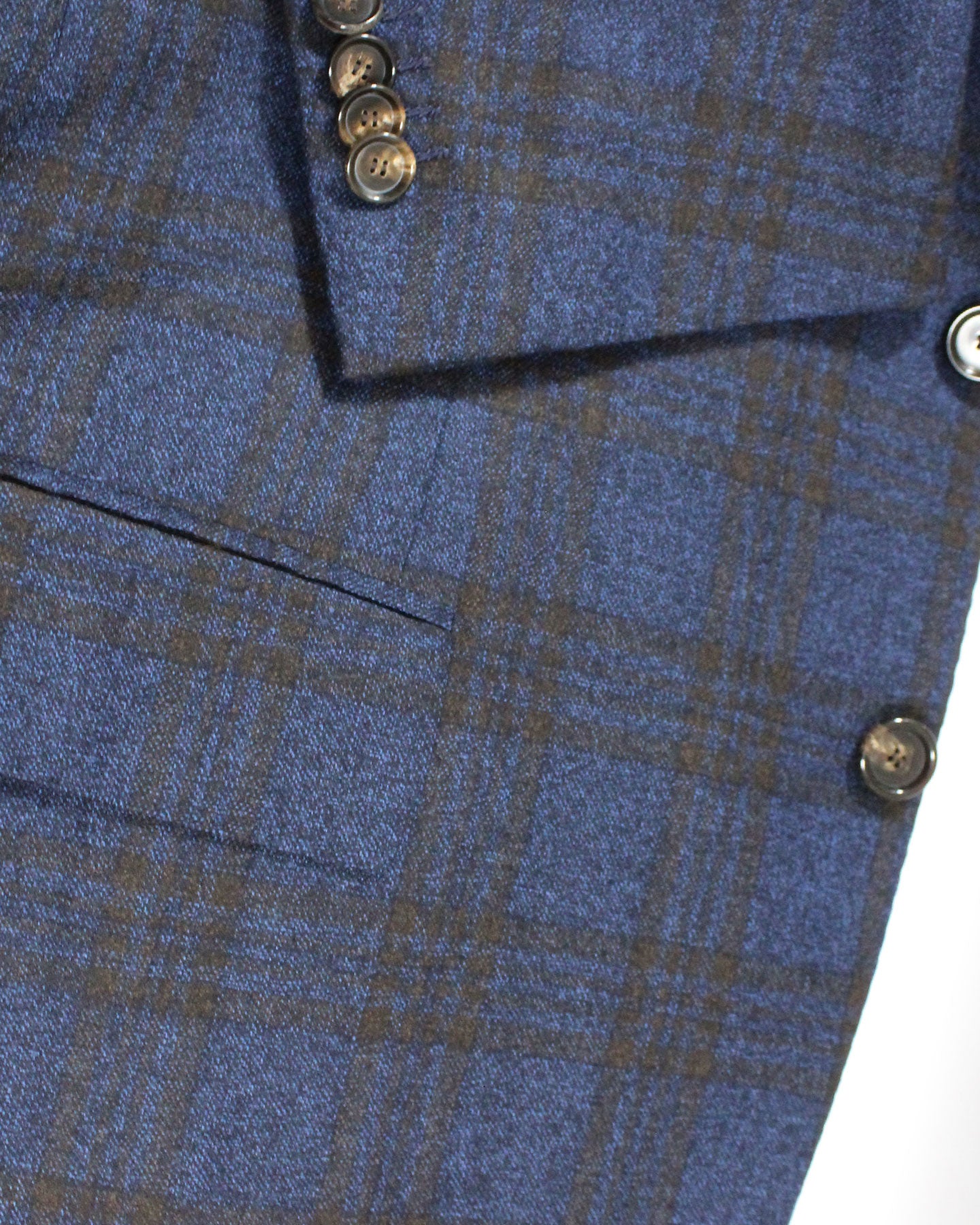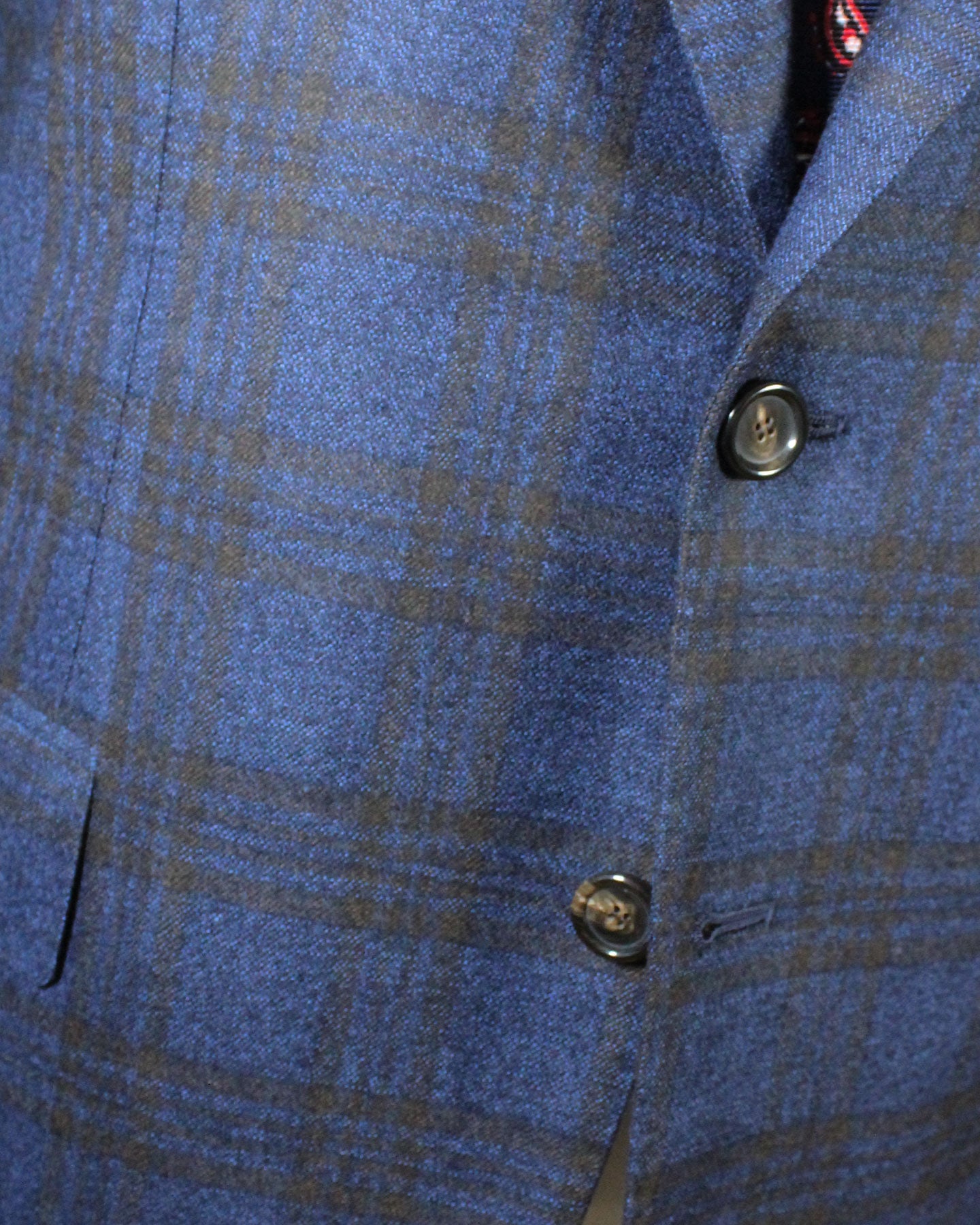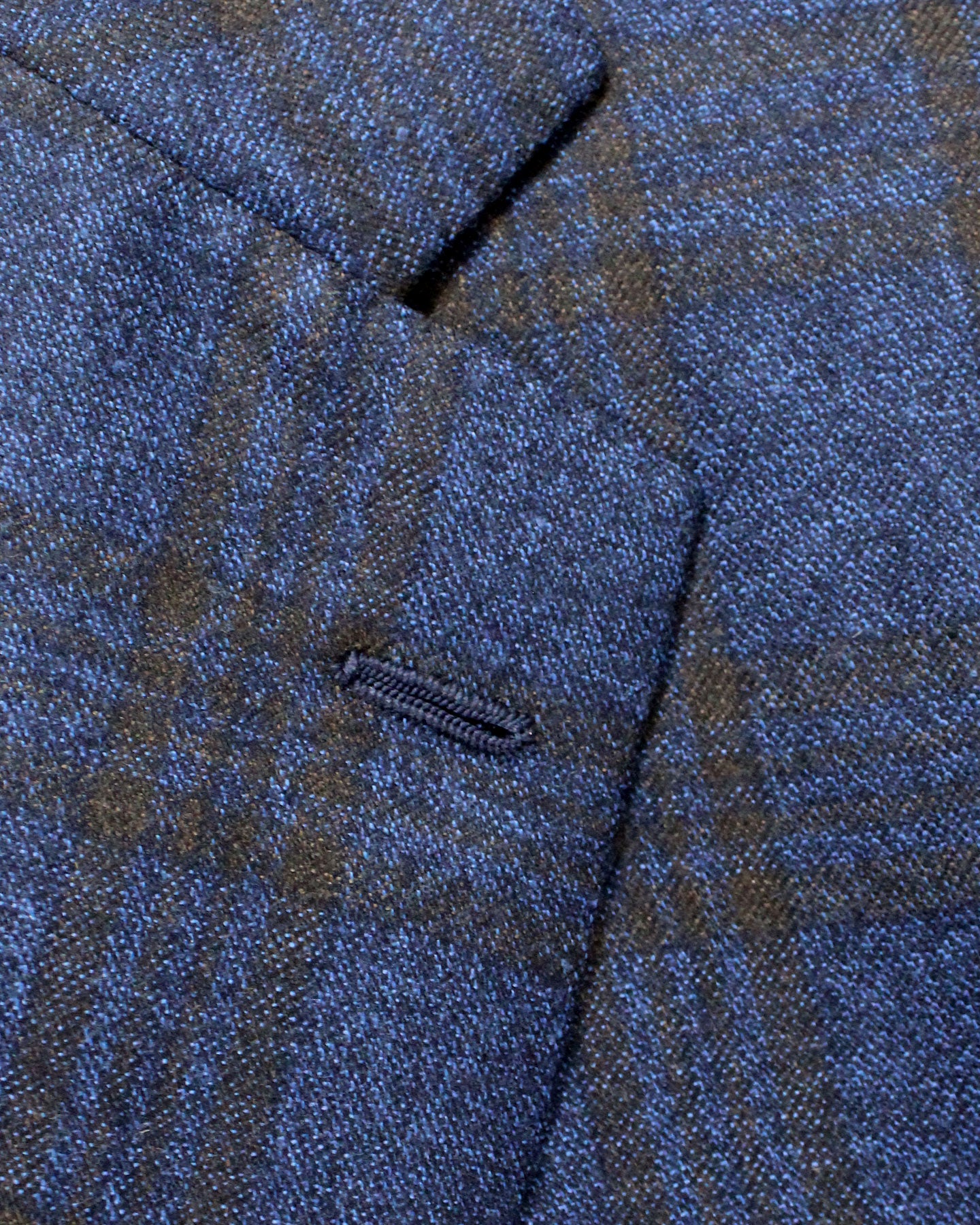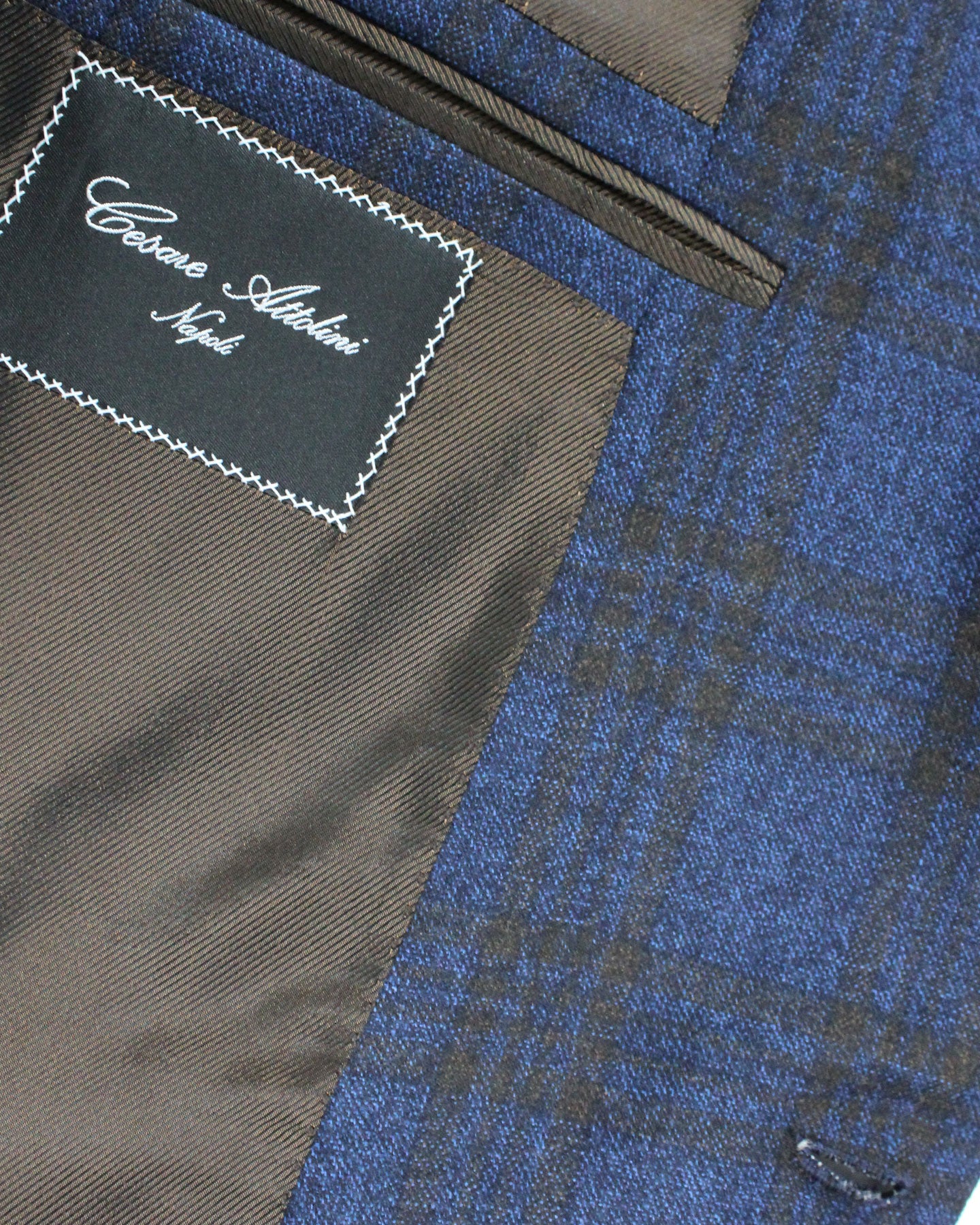 Sartorial - Genuine Cesare Attolini sport coat, midnight blue / dark brown windowpane plaid design, cashmere/ silk, 2 button jacket, hand made in Italy. Genuine Cesare Attolini Napoli, authentic Italian sartorial clothes for men. Luxury bespoke men clothes at outlet prices.
