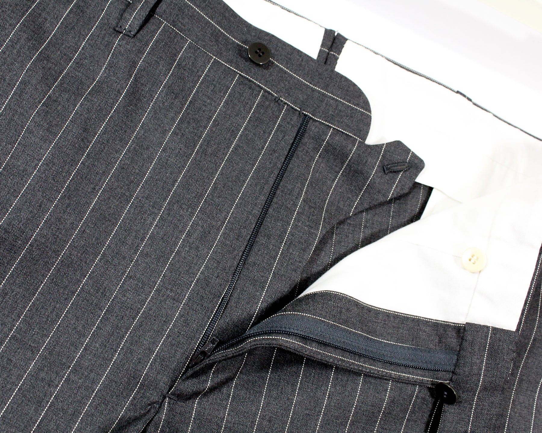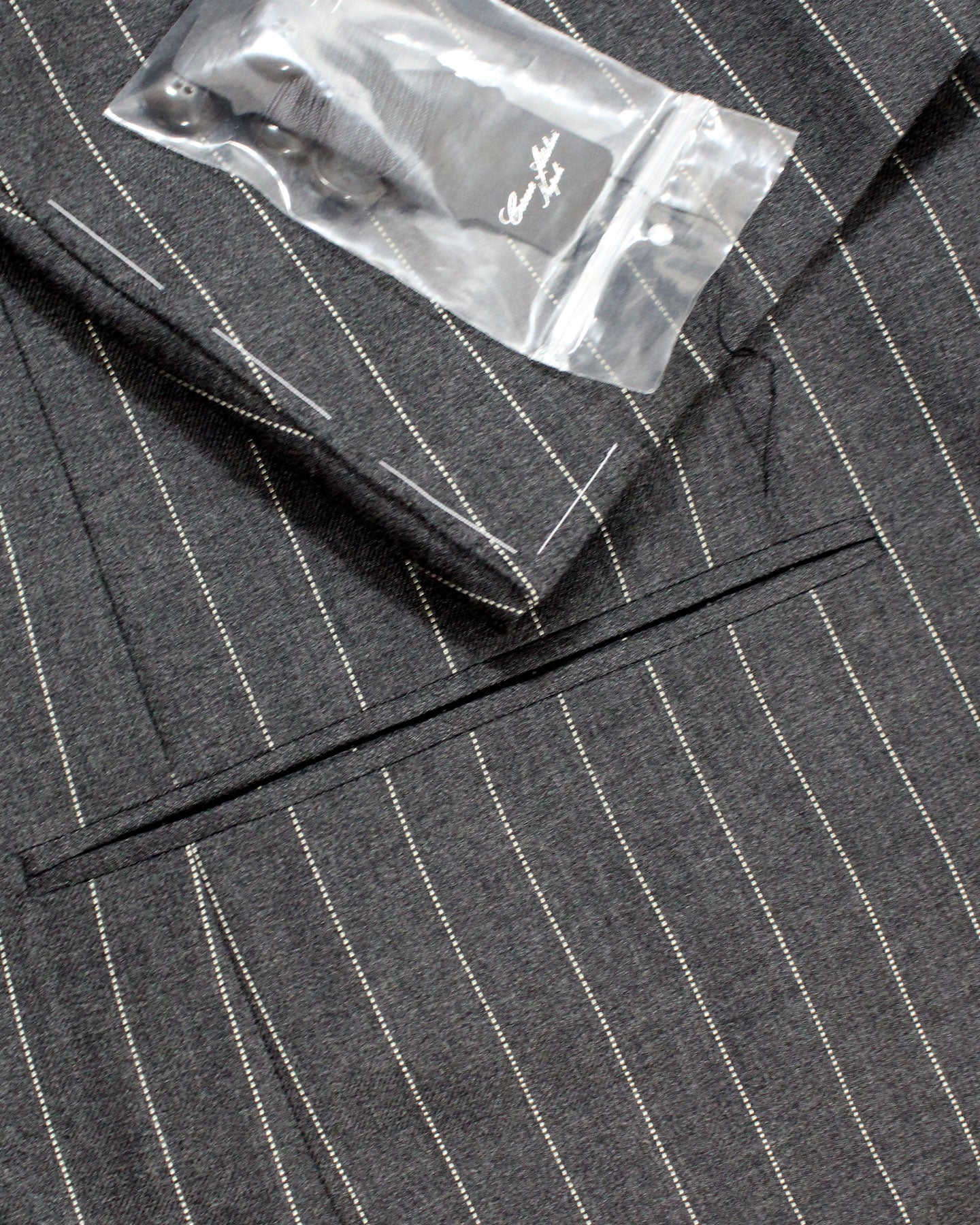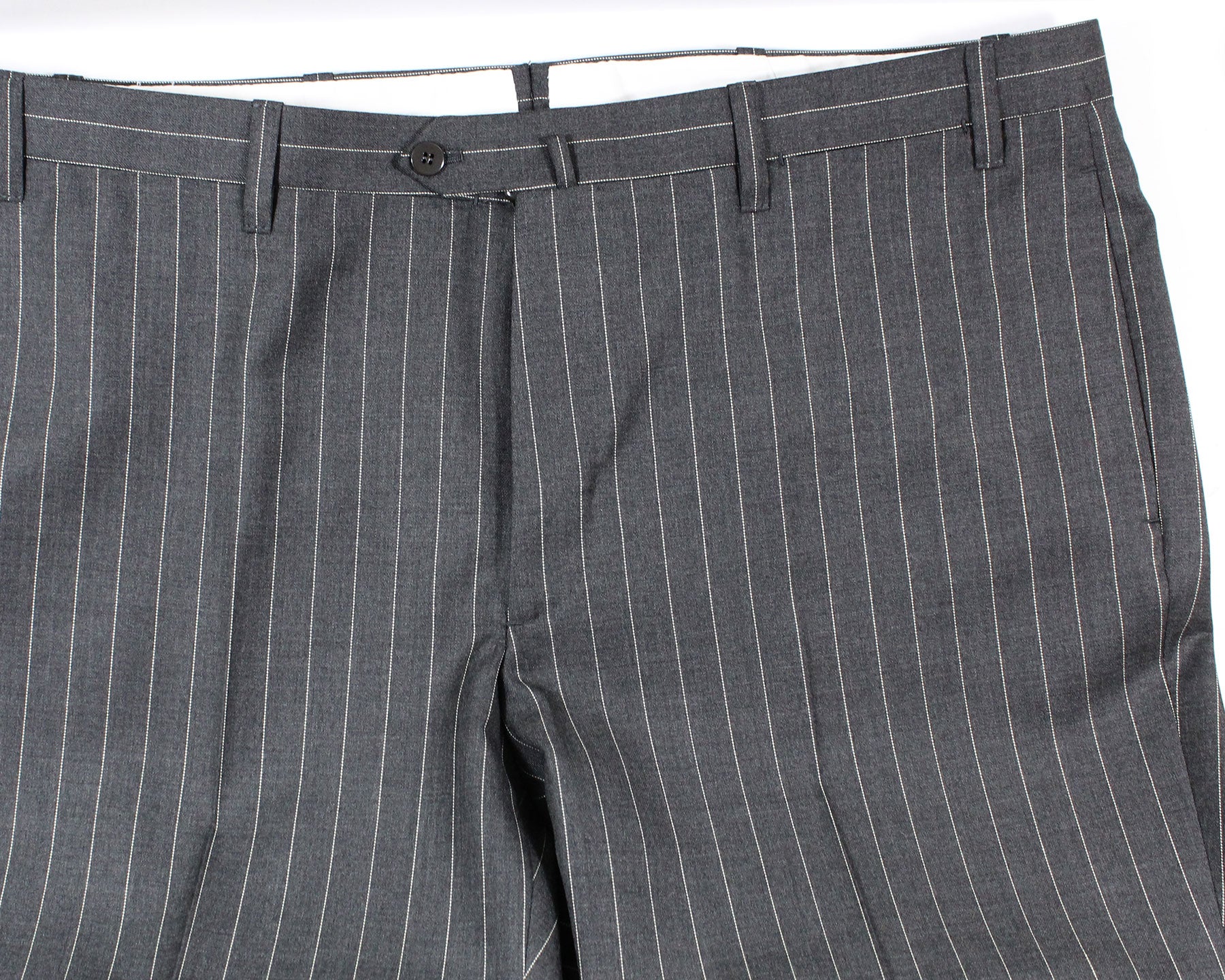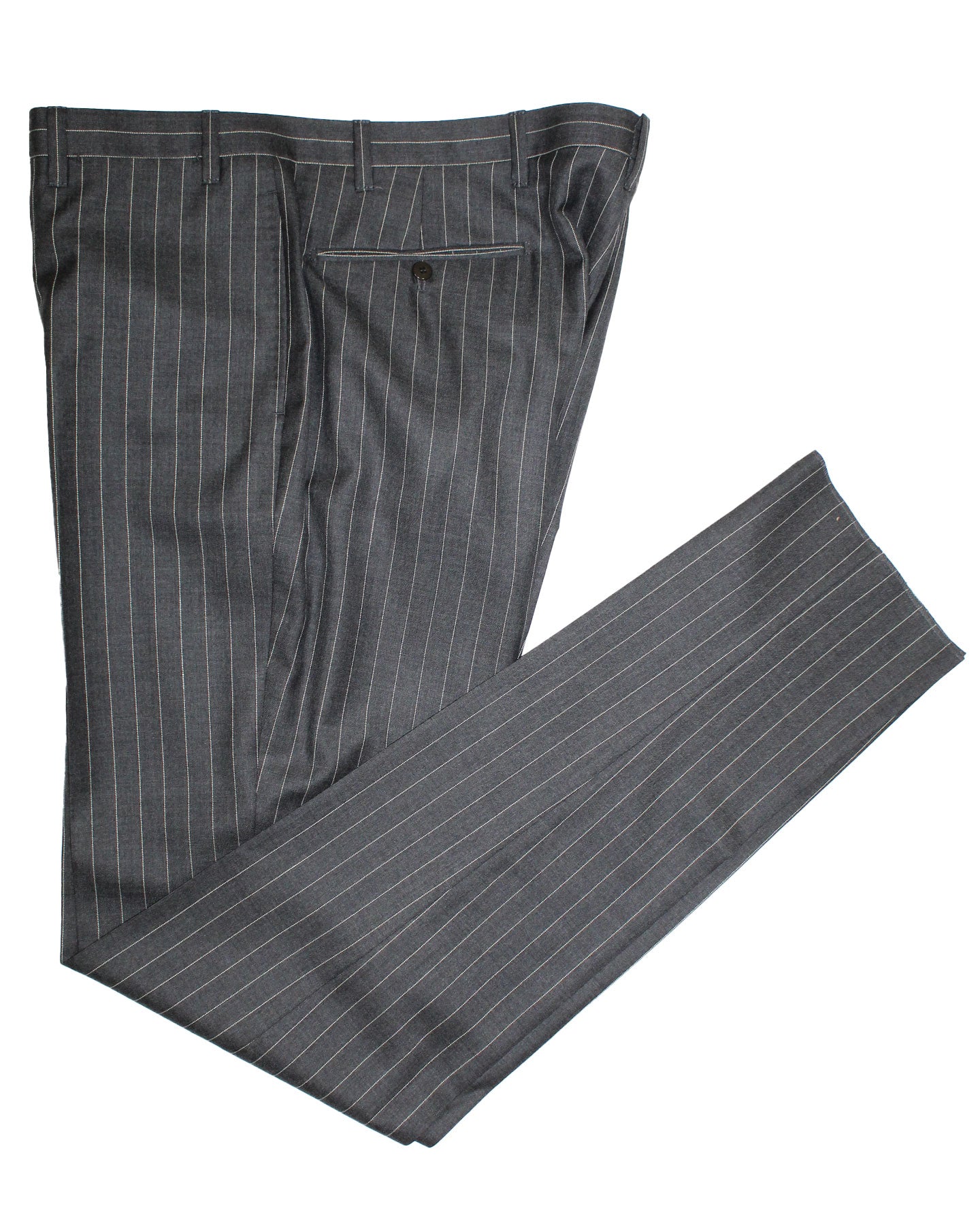 Sartorial - Authentic Cesare Attolini men suit, gray stripes design, wide notched lapel, wool, hand tailored, 3 button jacket (rolling rd button), flat front pants, hand made in Italy. Genuine Cesare Attolini Napoli, authentic Italian sartorial clothes for men. Luxury bespoke men clothes at outlet prices.