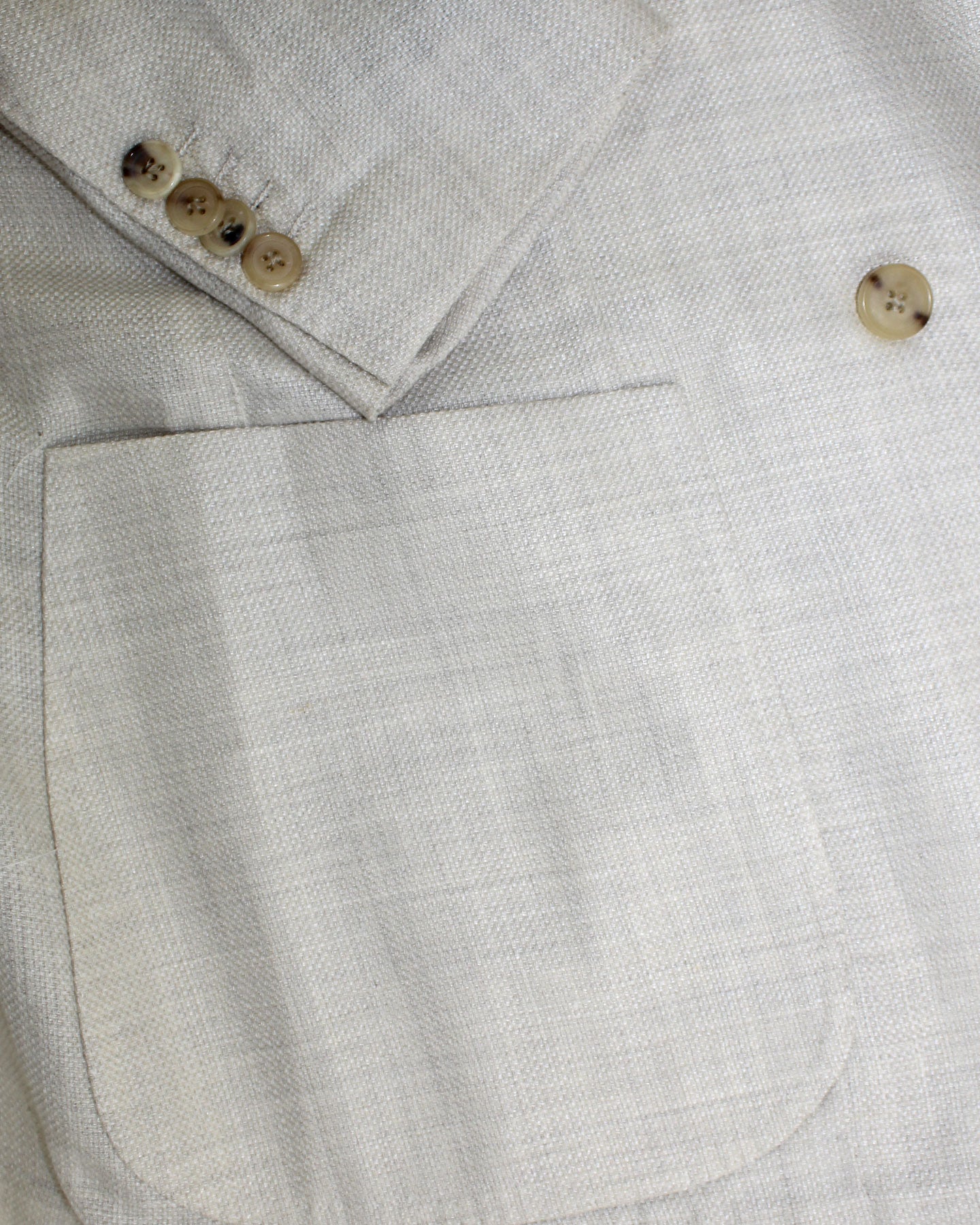 Sartorial: Genuine Luigi Borrelli double breasted sport coat, 2 button, gray, linen/ silk/ cotton, unlined construction with soft shoulders, bucket pockets, peak lapel, sartorial, hand made in Napoli, Italy. Sartorial quality men sport jackets, blazers and suits by Luigi Borrelli. Shop Bespoke Sport Coats.