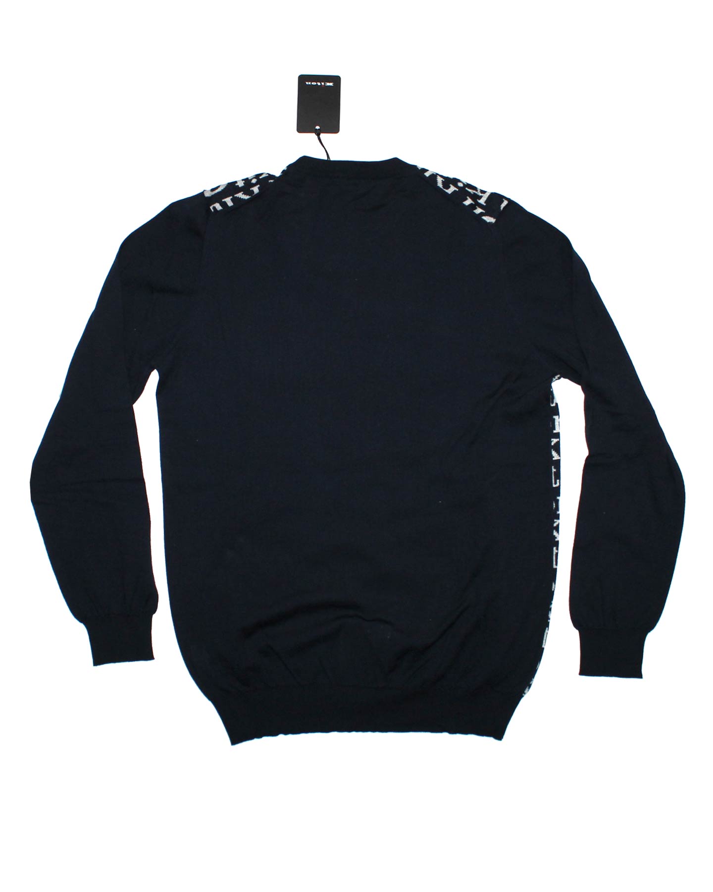 Luxury Italian menswear: Genuine Kiton longsleeve sweater, crewneck, black logo pattern, solid black sleeves and reverse, fancy cotton, made in Italy. Authentic Kiton men sweaters and t-shirts online.