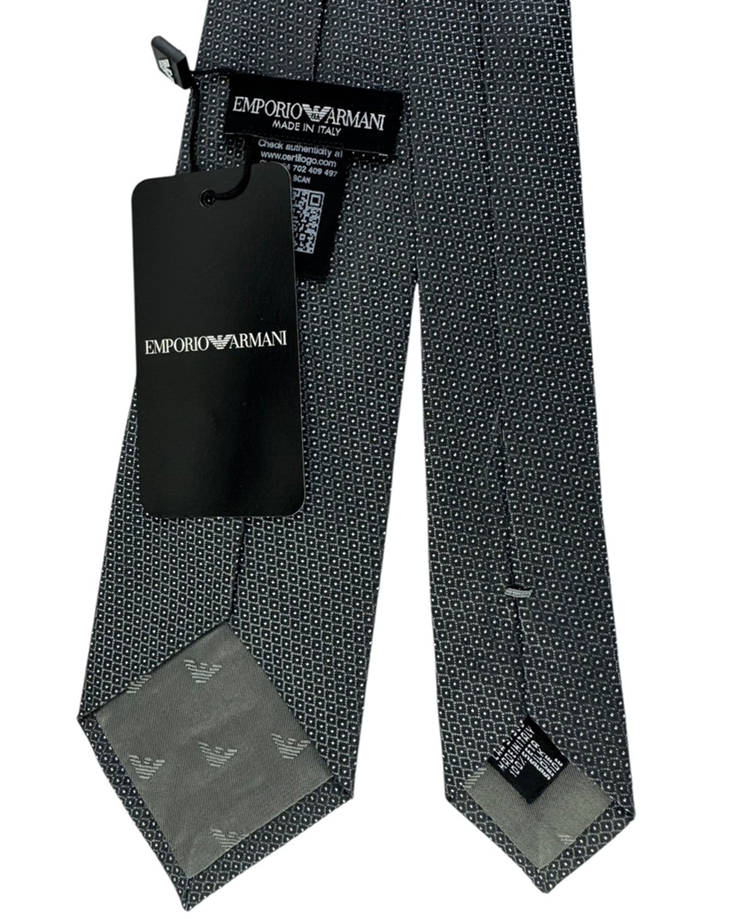 - SALE - Genuine Emporio Armani tie, dark gray silver black design, jacquard silk, hand made in Italy. Luxury Armani men collection men accessories online. Discount men designer ties.